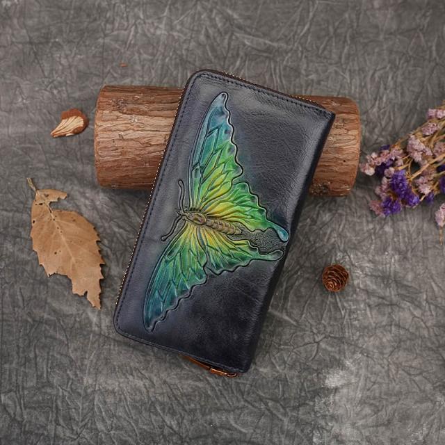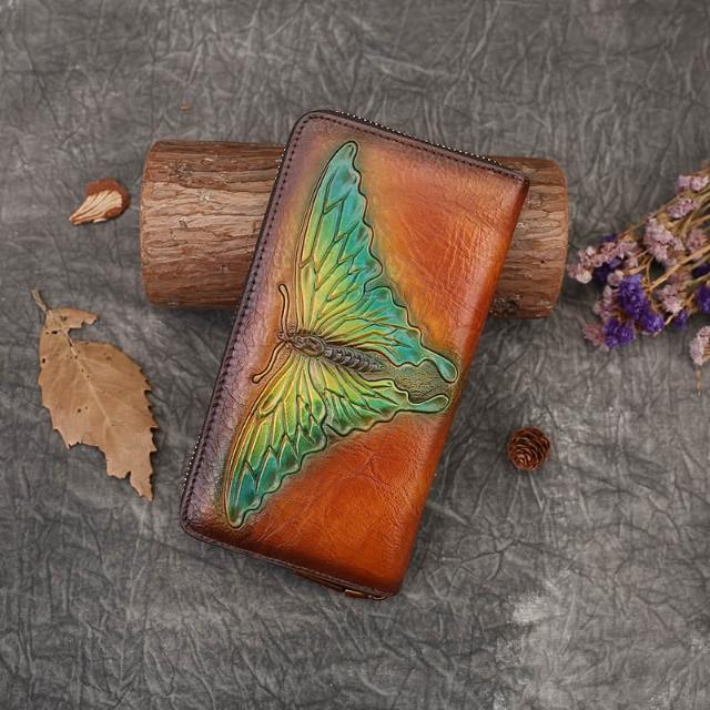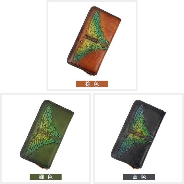 木子家衣櫥 外貿蝴蝶壓花真皮錢包復古手拿包女頭層牛皮零錢卡包代發文藝風 27