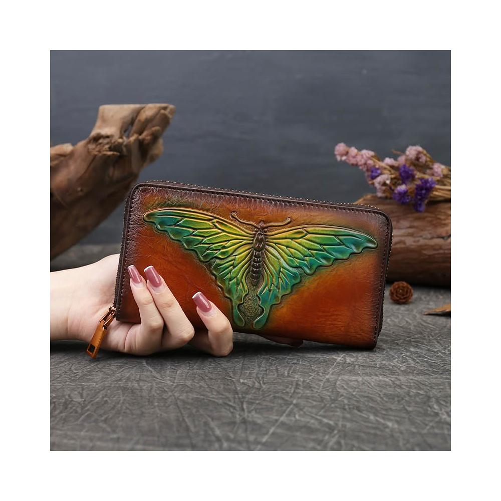 木子家衣櫥 外貿蝴蝶壓花真皮錢包復古手拿包女頭層牛皮零錢卡包代發文藝風 27