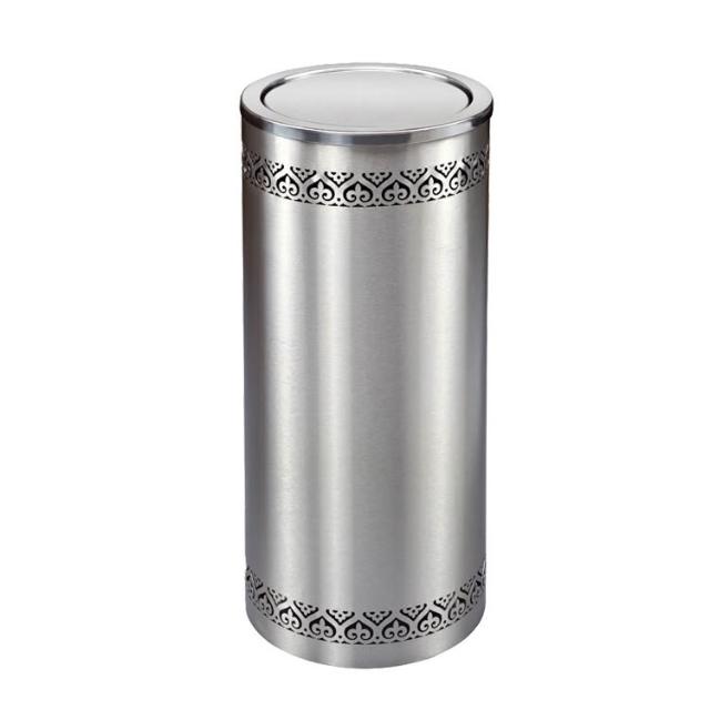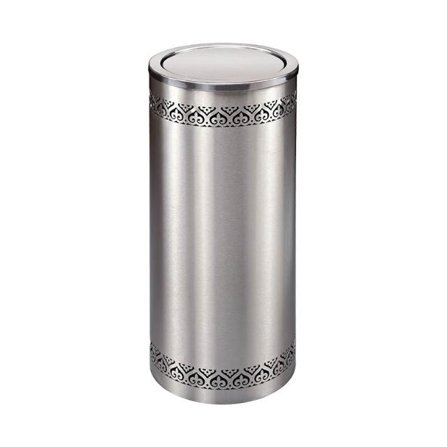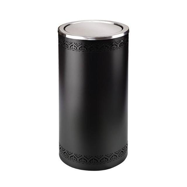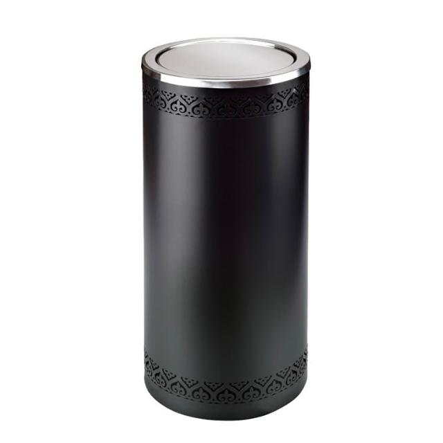 木子家衣櫥 -110 不銹鋼黑色圓形酒店垃圾桶港式镂空花洗手間翻蓋擦手紙桶 944