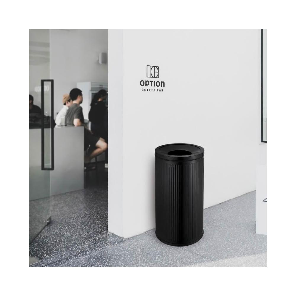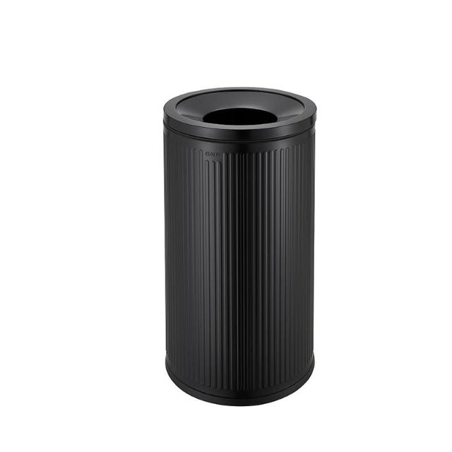 木子家衣櫥 圓形無蓋直投黑色豎紋創意奶茶店垃圾桶50 不銹鋼洗手間擦手紙桶 4