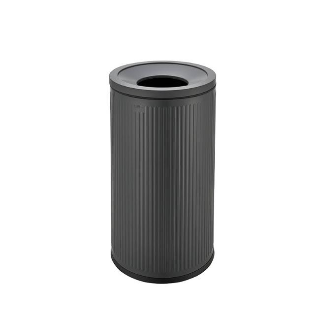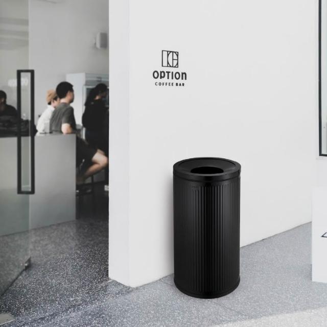 木子家衣櫥 圓形無蓋直投黑色豎紋創意奶茶店垃圾桶50 不銹鋼洗手間擦手紙桶 4