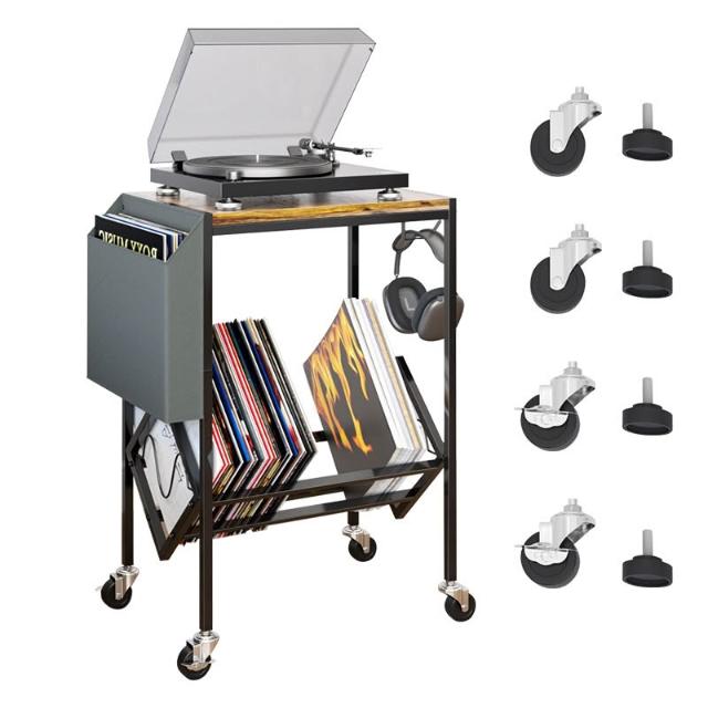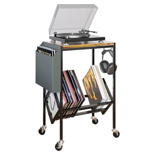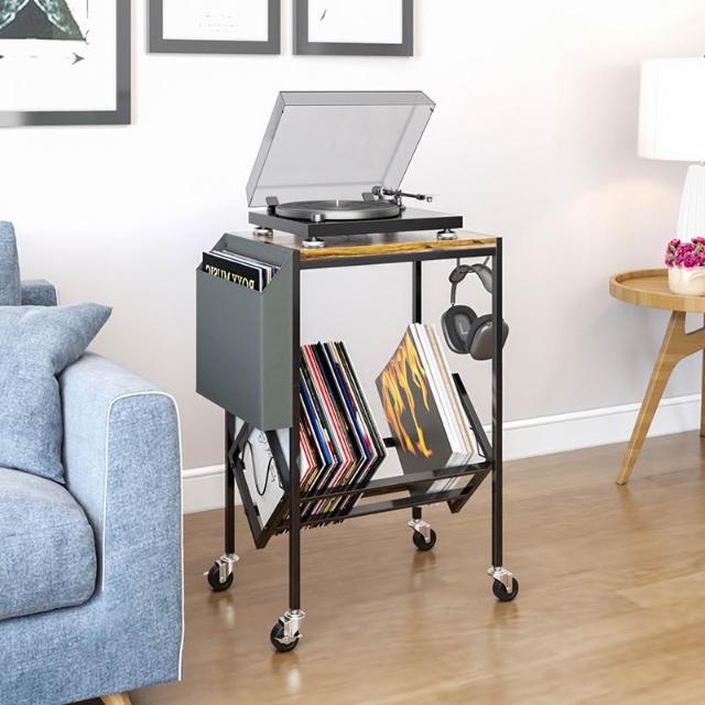 木子家衣櫥 雙層鐵藝黑膠唱片架配收納袋唱片機床頭櫃辦公報刊書架雜誌置物架
