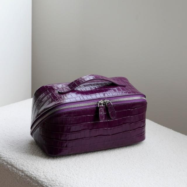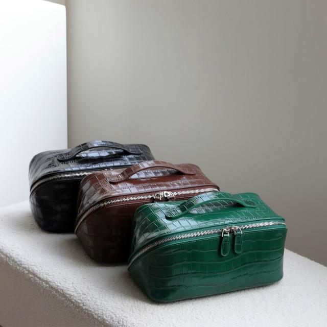 木子家衣櫥 個性時尚高級感頭層牛皮鳄魚紋洗漱包大容量旅行真皮化妝品收納包 6