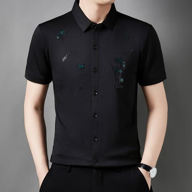 2026新款夏季桑蠶絲短袖襯衫彈力高端商務薄款無痕中年冰絲襯衣男