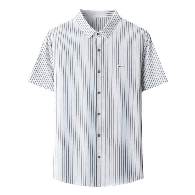 2026高檔桑蠶絲冰絲豎條紋短袖襯衫男士夏季薄款抗皺免燙襯衣潮