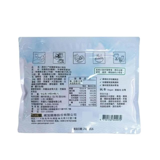 高仰三 新產品 有機椎茸味付海苔 | 鮮嫩 膠質濃厚 鮮甜無比 18g/包