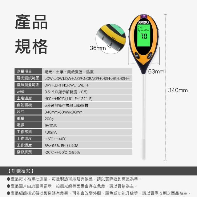 土壤檢測儀 PH值 四合一 土壤測試儀 土壤酸鹼 光照度計 測濕度 濕度計 園藝工具 酸鹼度 植物濕度 618-SM4