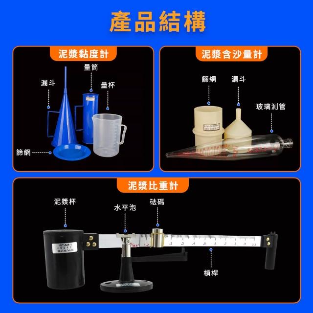 泥漿比重計 泥漿黏度計 泥漿三件套測試儀 測量泥漿 黏度計 工程泥漿比重黏度 含砂量計 泥漿密度計 618-ANY1
