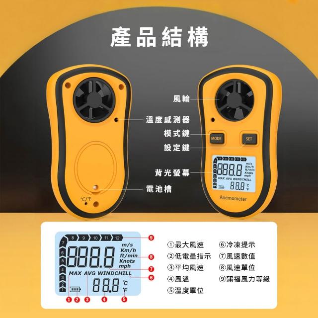 • 多種風速單位切換,滿足各種需求