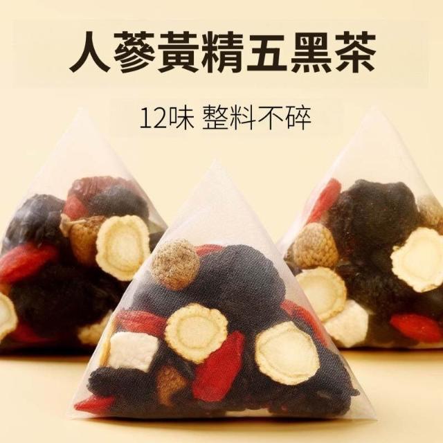 五黑茶 人參黑桑葚黑枸杞黑芝麻黑豆覆盆子五黑茶 養生茶 養發茶 獨立茶包