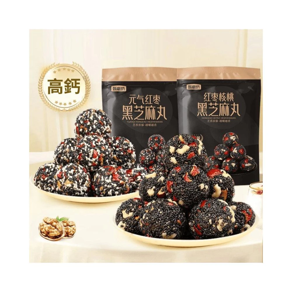 甄磨坊紅棗核桃黑芝麻丸 元氣紅棗黑芝麻丸 芝香糯 高鈣芝麻球 解饞糕點 200g/袋