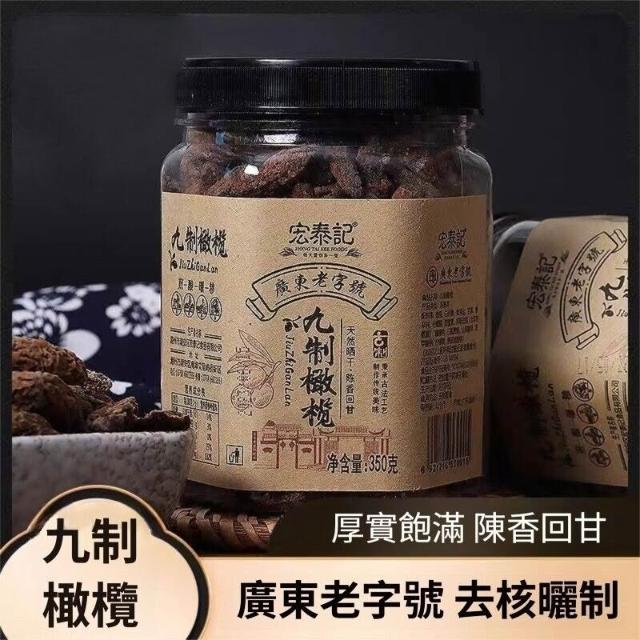 宏泰記九製橄榄 無核甘草橄欖 蜜餞果乾 潮汕特產 350g/罐