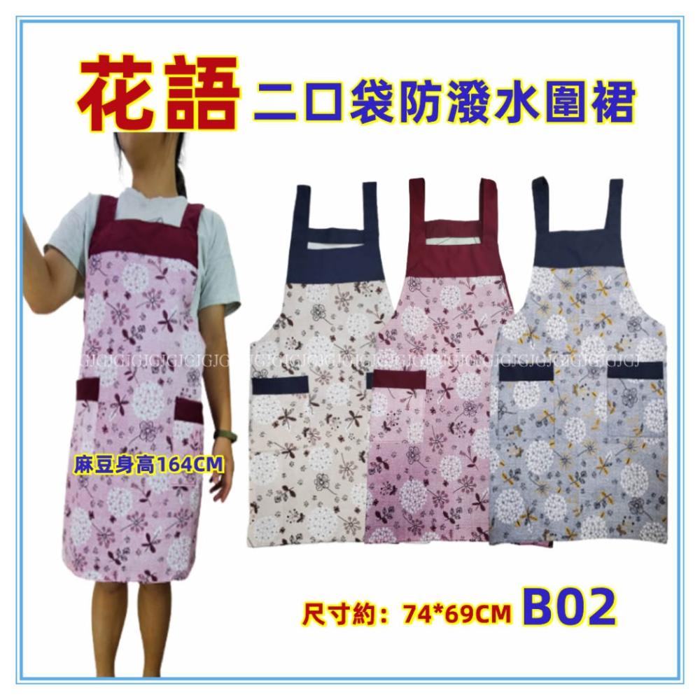 佳冠附發票~B02花語二口袋圍裙 台灣製造圍裙,雙層防潑水圍裙,咖啡廳 工作圍裙 幼兒園 廚房制服