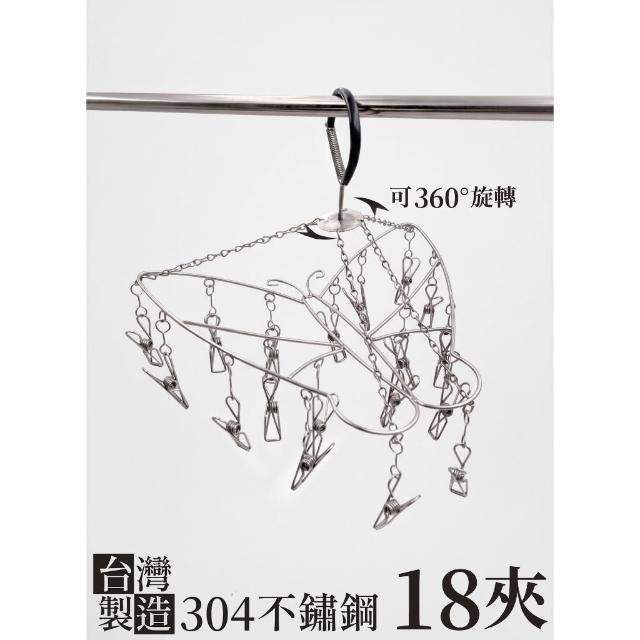 台灣製造*不鏽鋼蝴蝶吊衣架(18夾),數十年口碑,夾子彈性超群且多年後不疲乏不斷裂 曬襪架 晾衣架 衣架 衣褲夾 褲夾