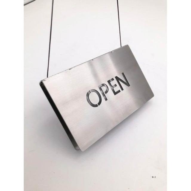 台灣製造*OPEN CLOSED 不鏽鋼雙面標示牌可翻轉 營業中 休息中 掛牌 標示牌 304不銹鋼