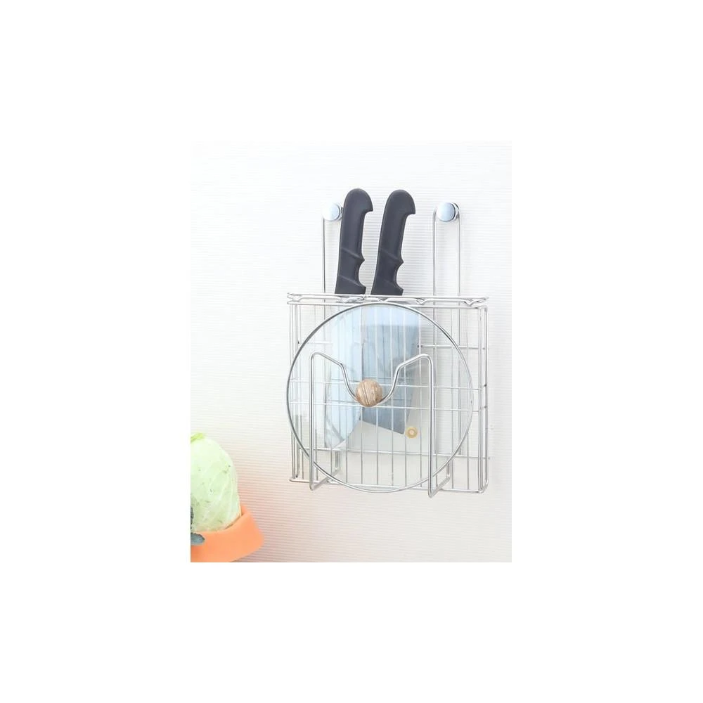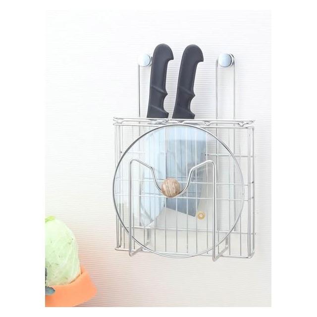 不鏽鋼懸掛式刀架、砧板。刀具、砧板、鍋蓋等可複合收納,高品質304不銹鋼