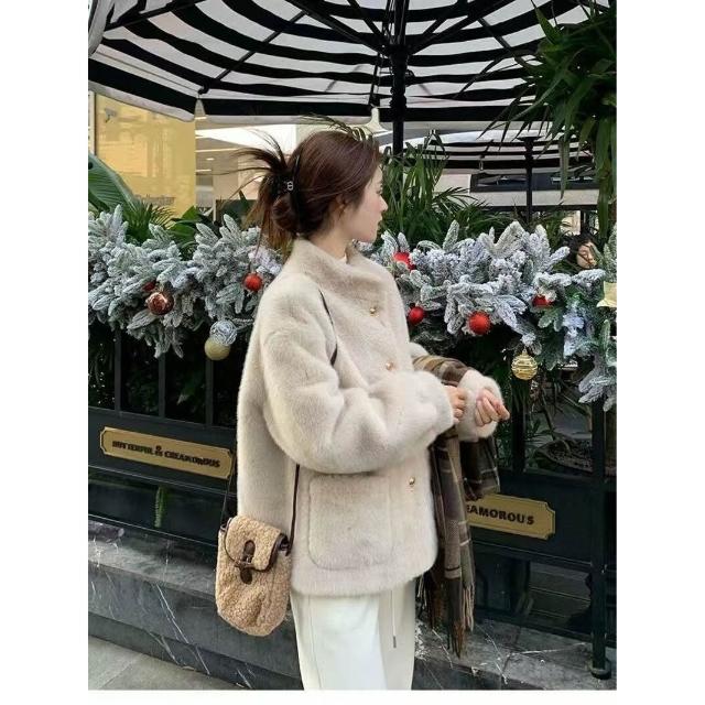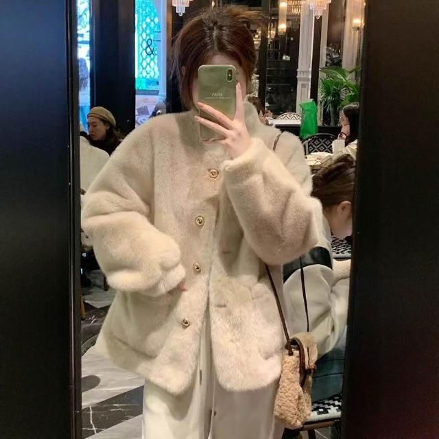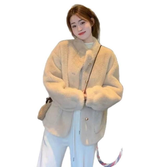 2025新款加厚水貂絨皮毛一體毛毛外套女冬季短款立領環保皮草大衣 89d