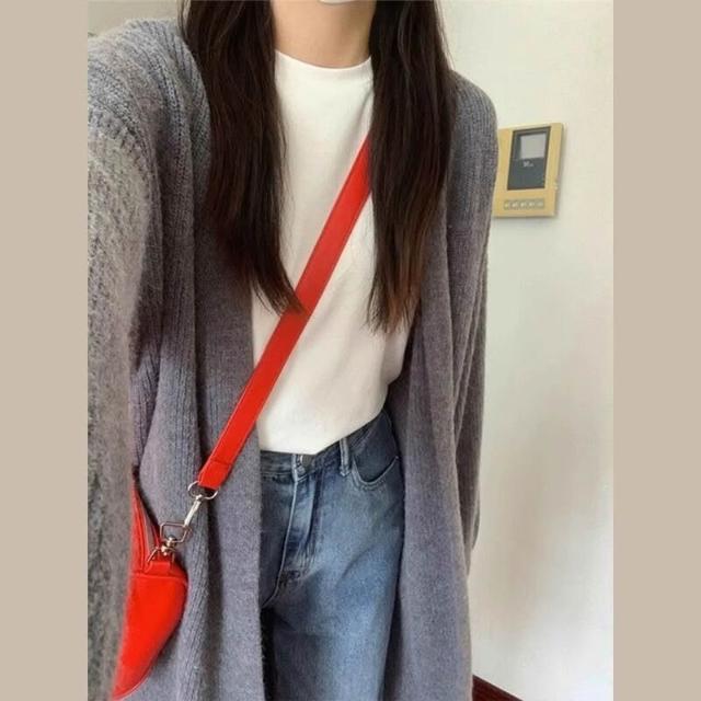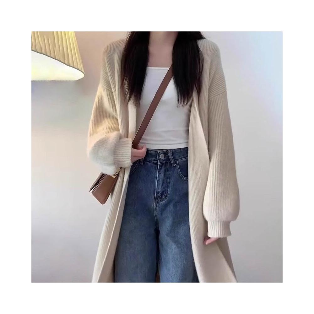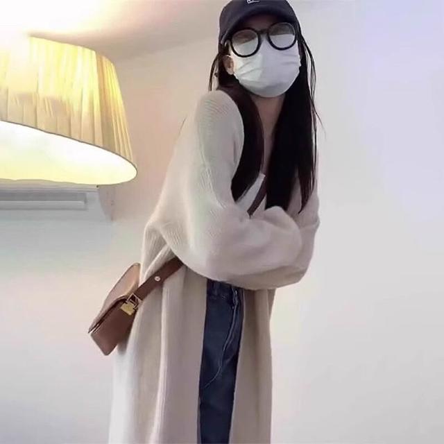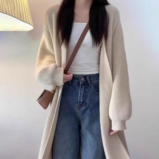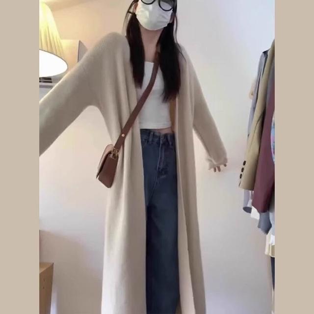 杏色毛衣外套女裝秋冬2024新款慵懶風中長款針織開衫奶系穿搭上衣 904