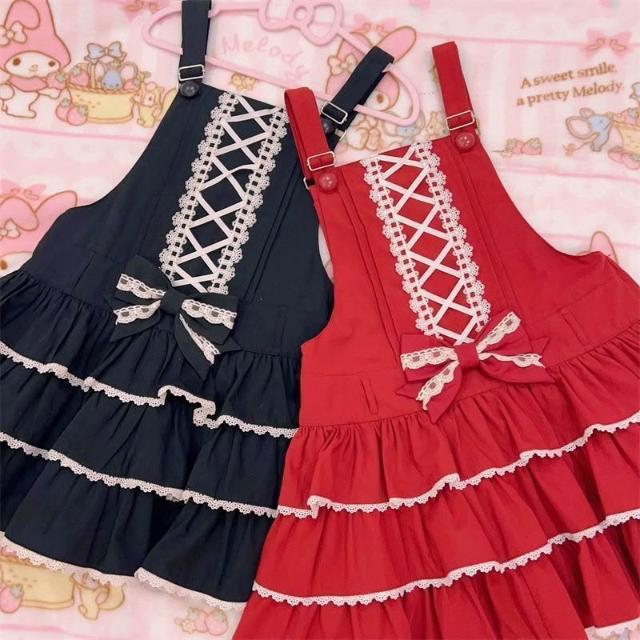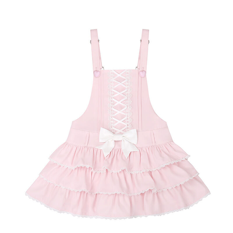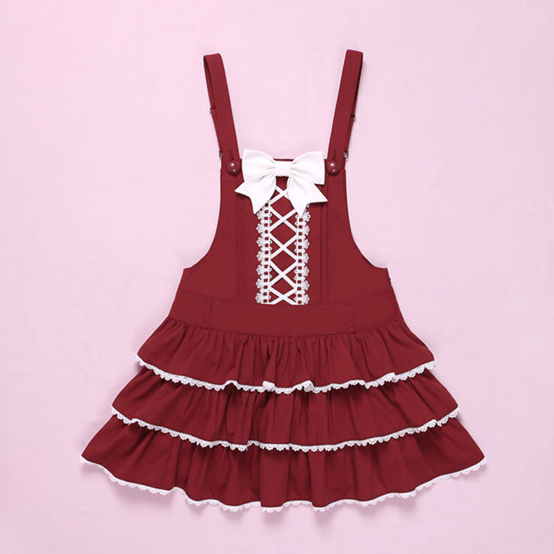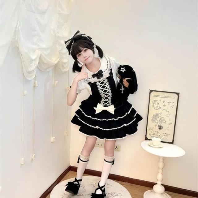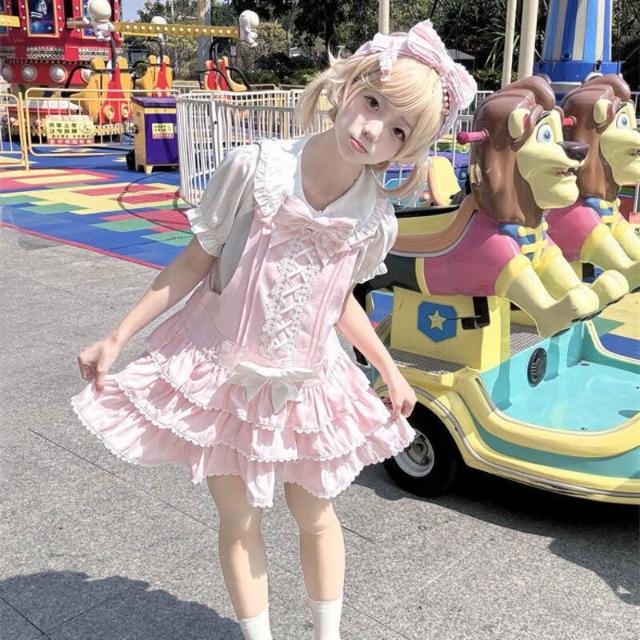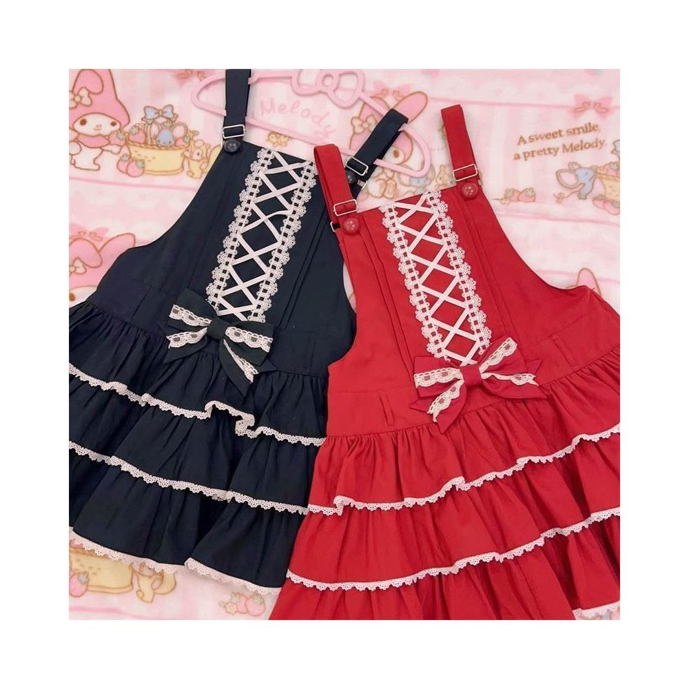 雨墨 lolita古早昭和蛋糕三層裙擺背帶裙襯衫套裝 cf3