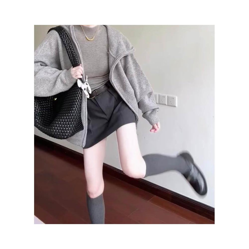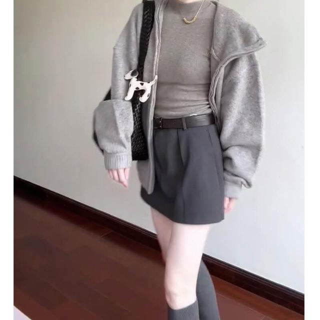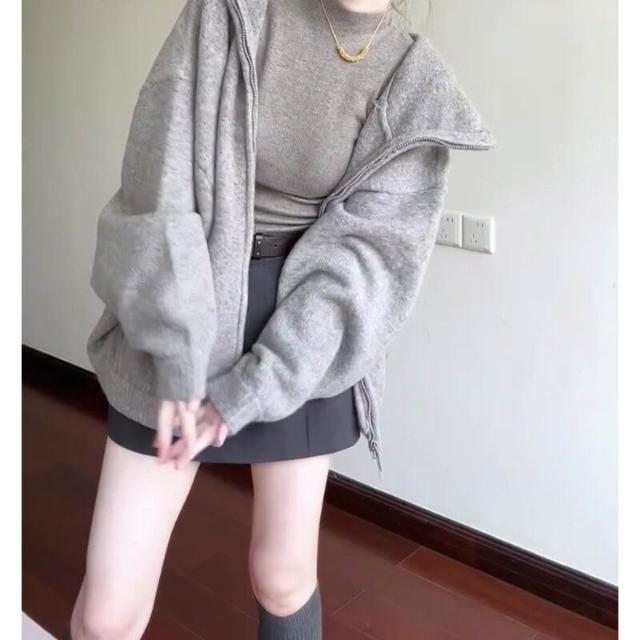 雨墨 韓系灰色毛衣連帽外套女秋季穿搭超好看寬松慵懶高級感針織衫上衣 de0