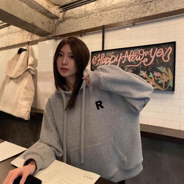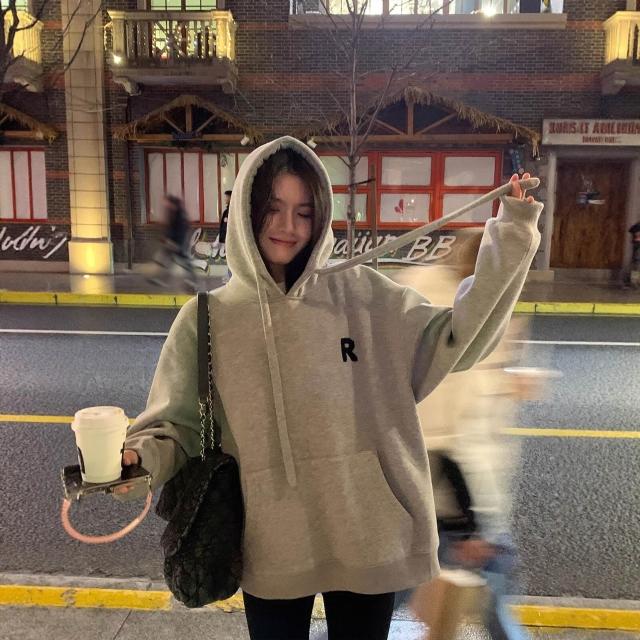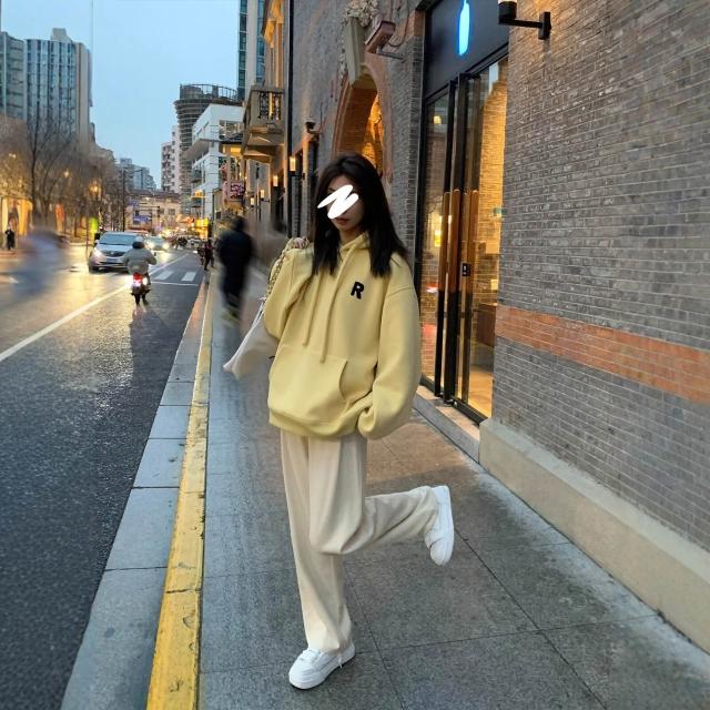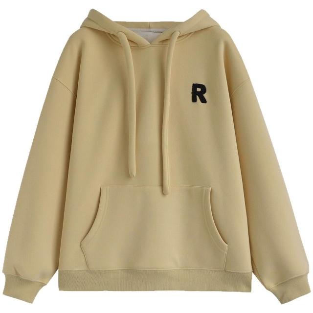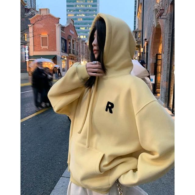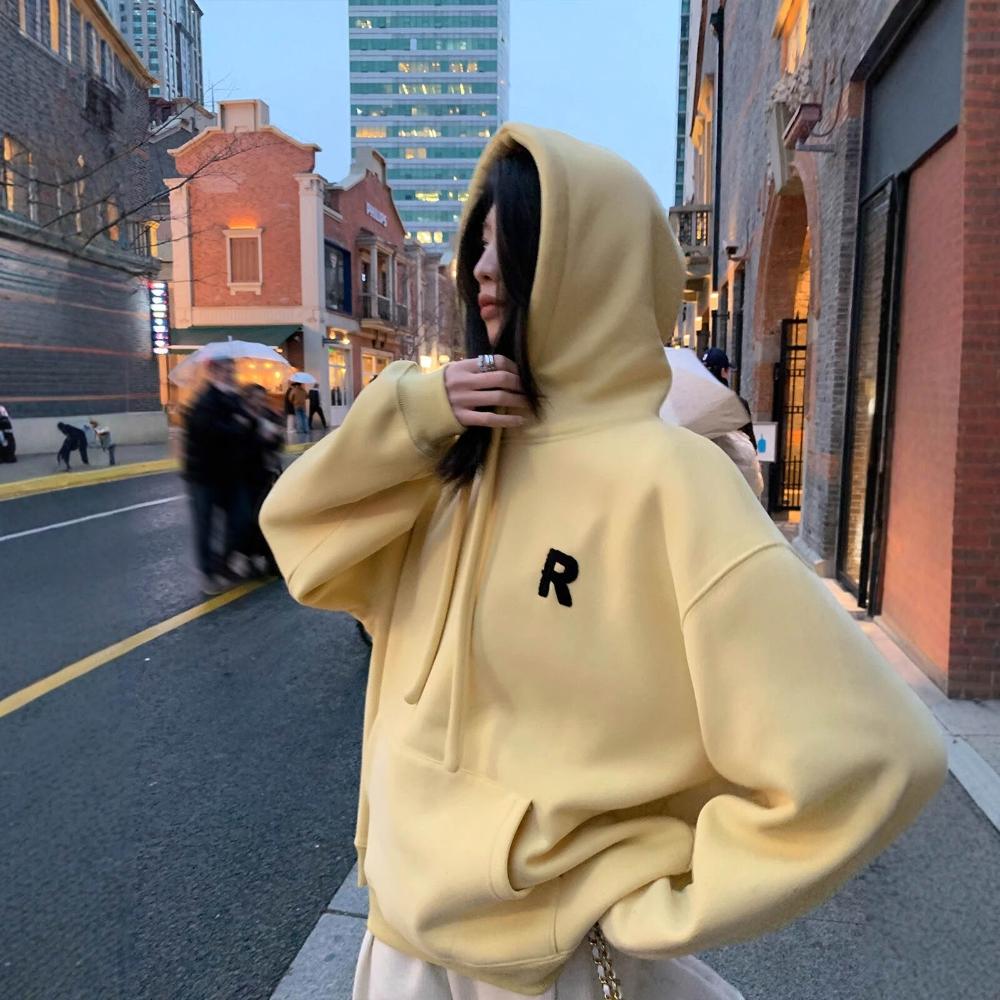 雨墨 阿一 抽繩連帽衛衣女秋季寬松休閑上衣韓系慵懶風加絨暖黃色外套 884