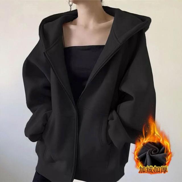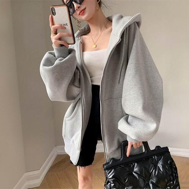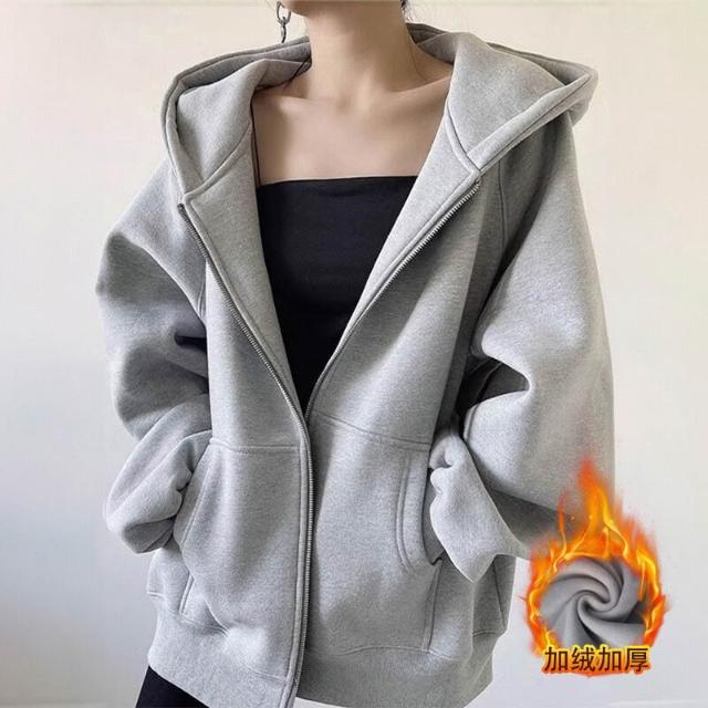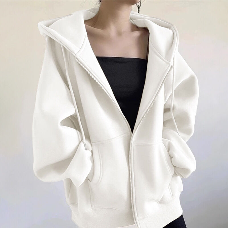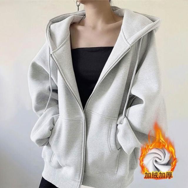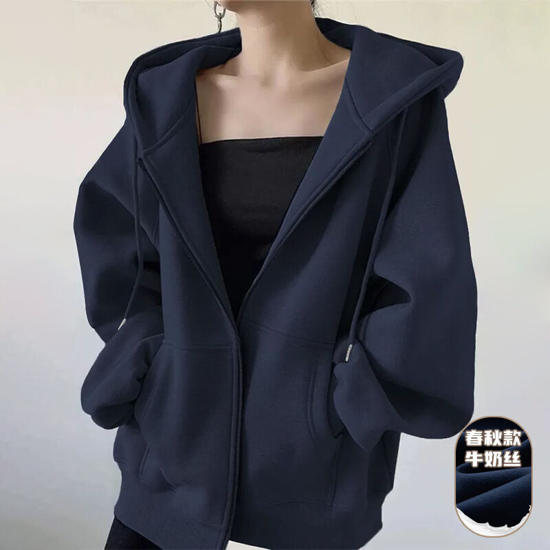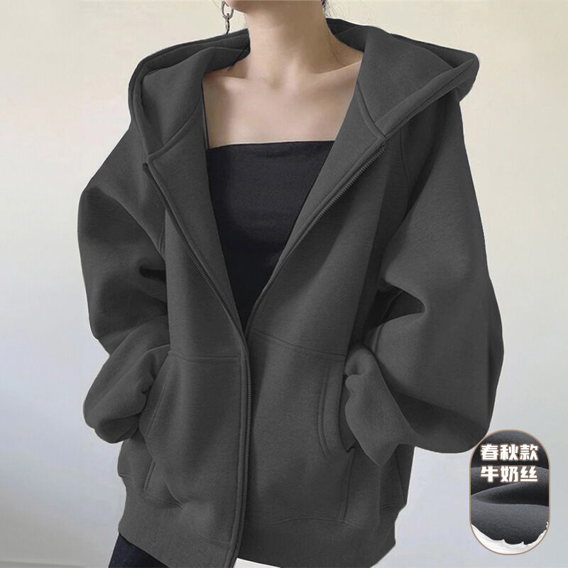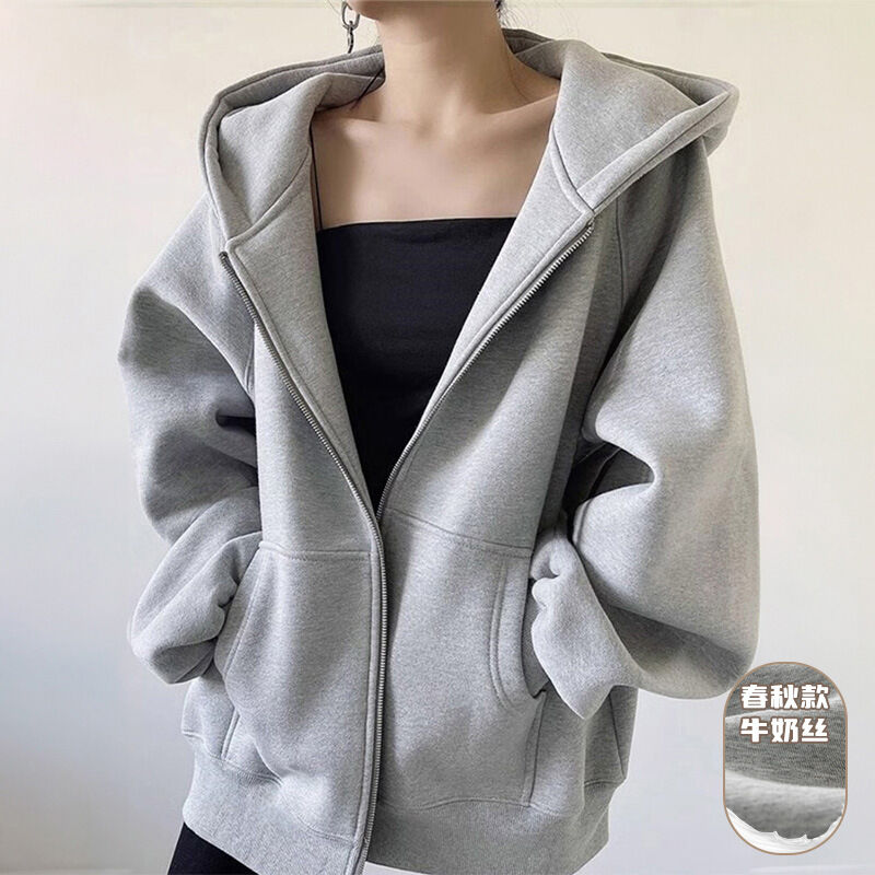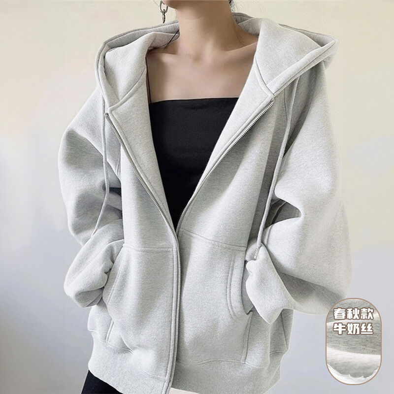 雨墨 白色連帽衛衣女外套春秋薄款2025新款爆款慵懶風寬松開衫拉鏈上衣 359