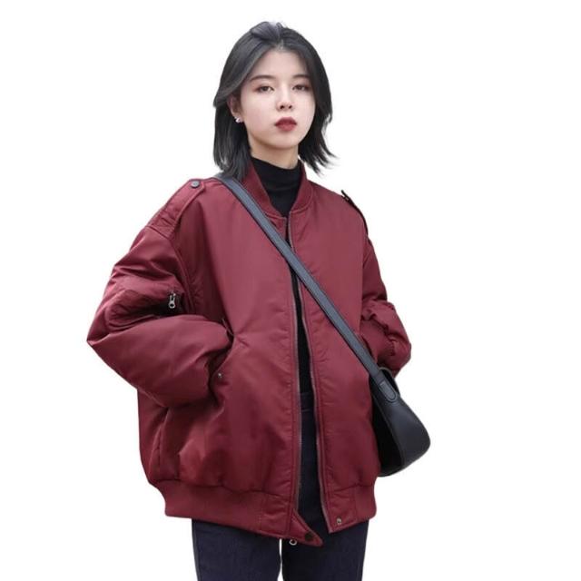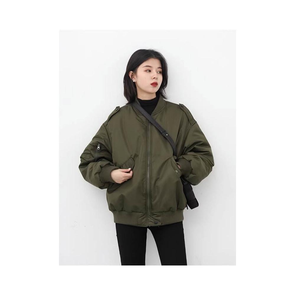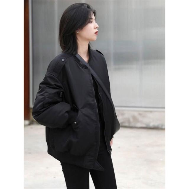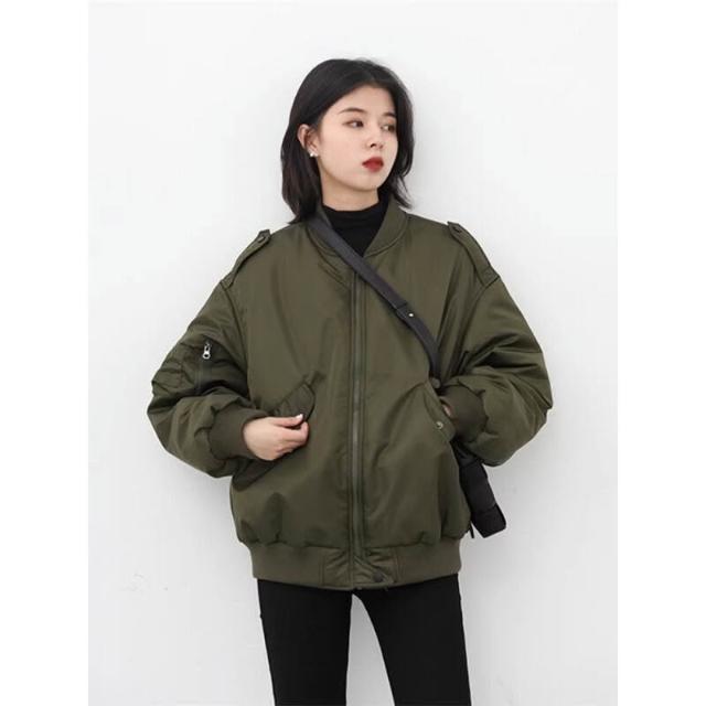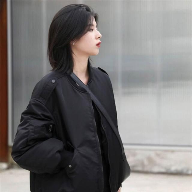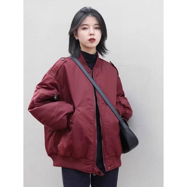雨墨 棉服女冬季2025年新款寬松秋冬美式飛行員夾克棉襖外套加厚棒球服 d4b