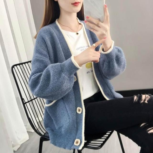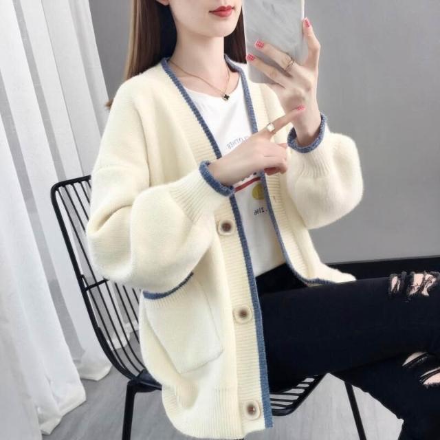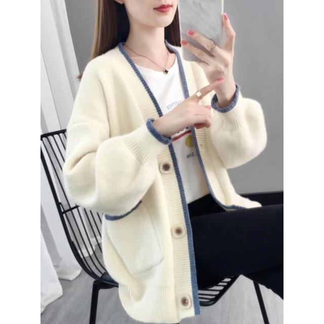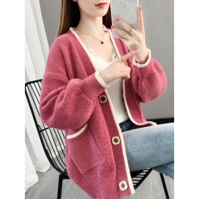 雨墨 毛衣外套女開衫寬松慵懶風秋冬新款韓版加厚中長款V領外搭針織衫 94c