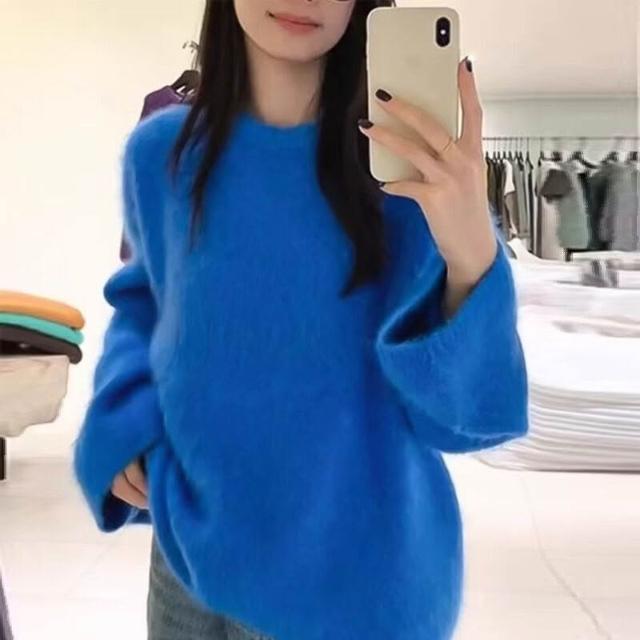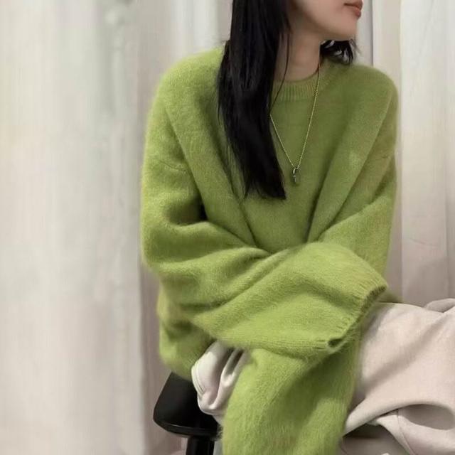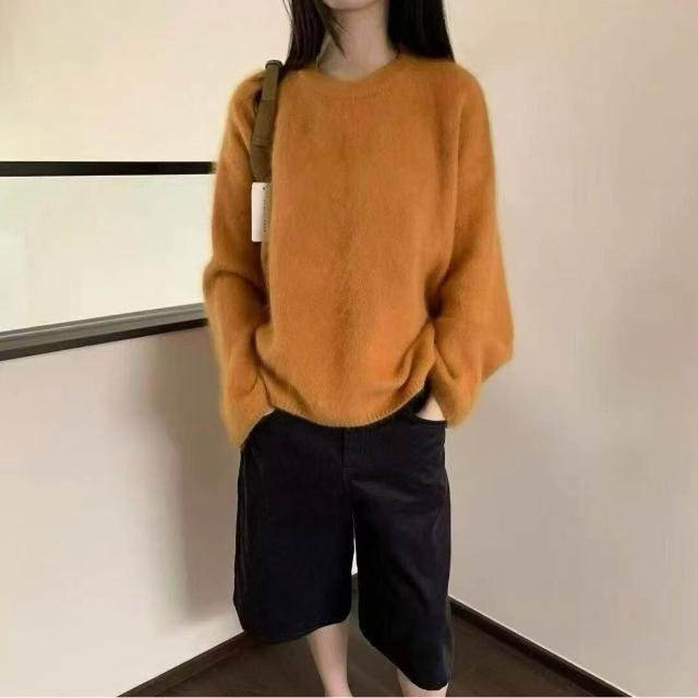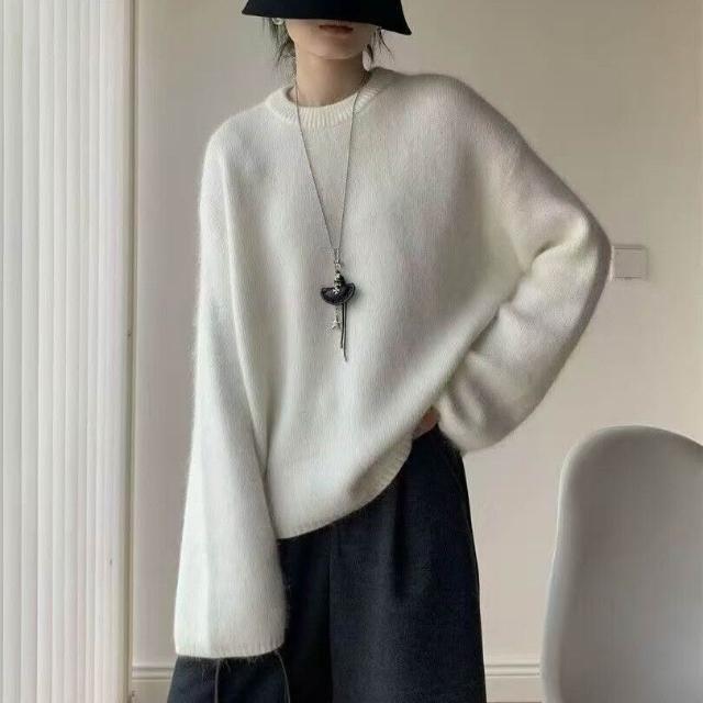 雨墨 十三行秋冬新款軟糯休閑兔毛毛衣女外穿寬松慵懶風純色針織衫上衣 187