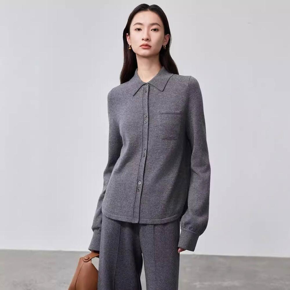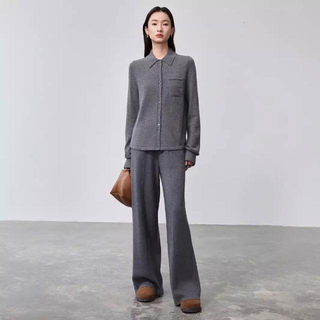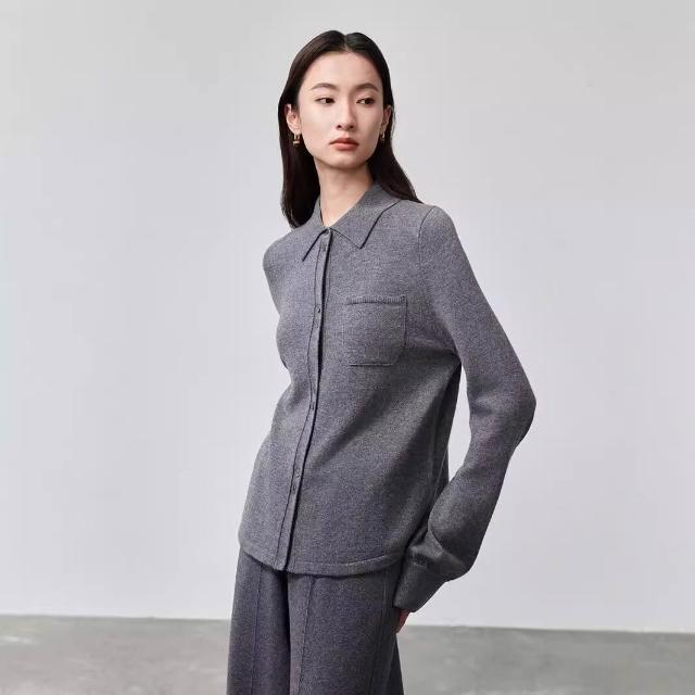 雨墨 簡約慵懶風針織開衫純色打底毛衣女羊毛中長款寬松顯瘦上衣針織衫 871