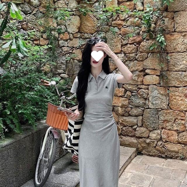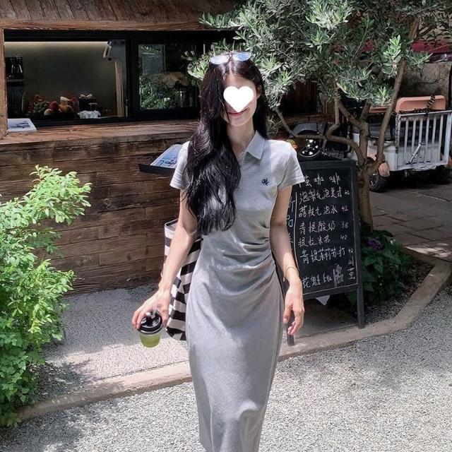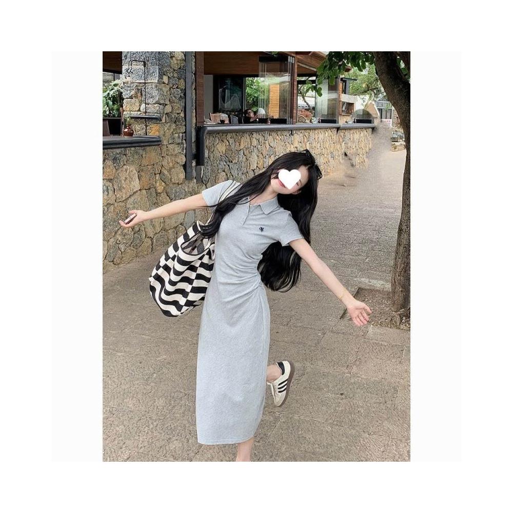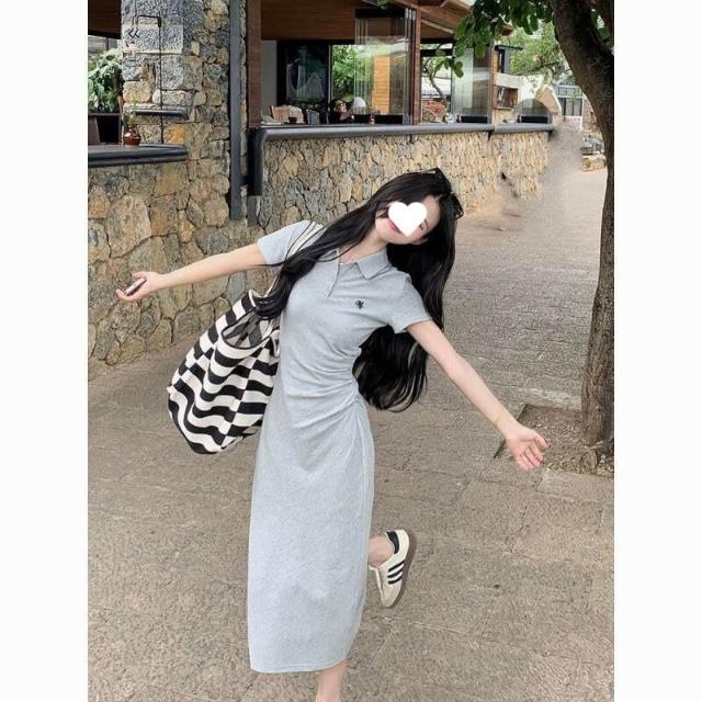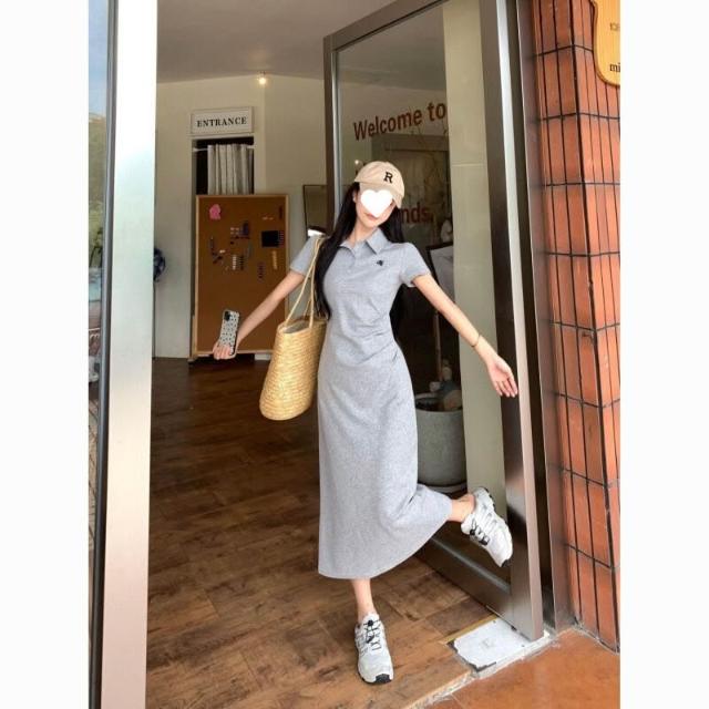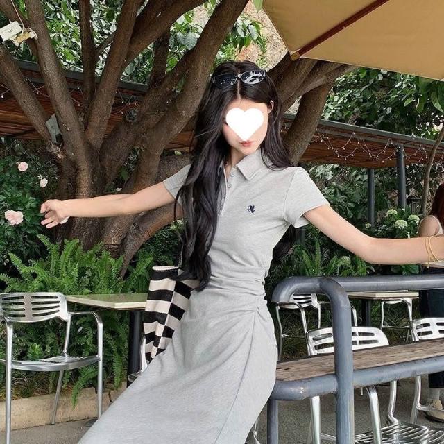 小眾高級感學院風減齡polo領簡約連衣裙顯瘦休閑短袖百搭中長裙 cb6