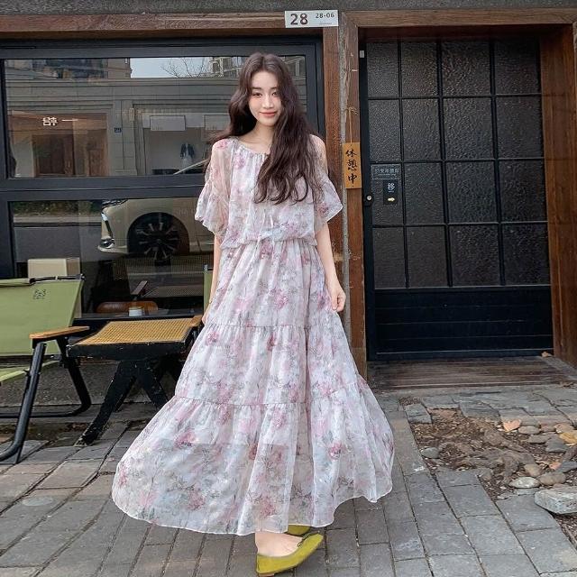 連衣裙女夏季荷葉袖碎花連衣裙女2025新款仙氣飄飄高級感日系長裙 027