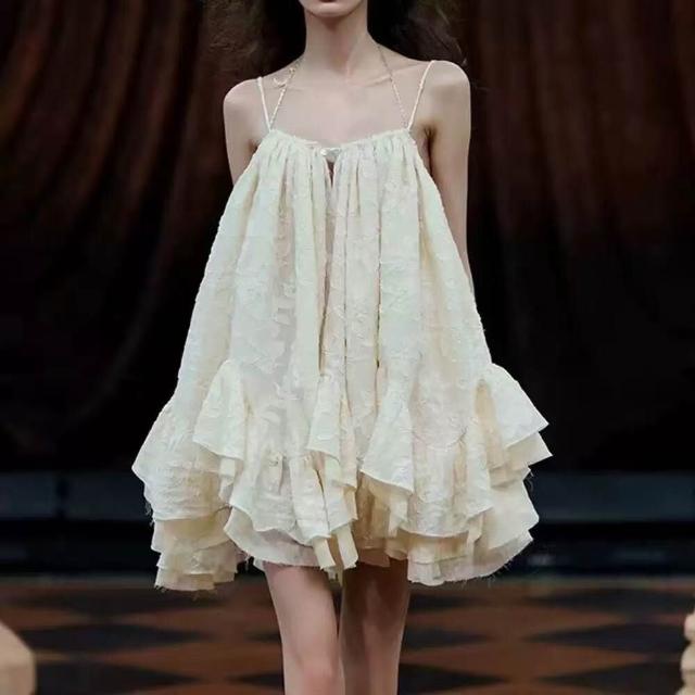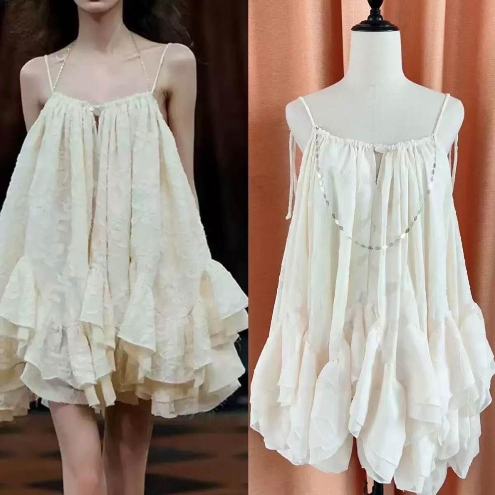 現貨/仙氣飄飄白色荷葉邊仙女連衣裙 海邊度假吊帶蓬蓬裙上衣 539
