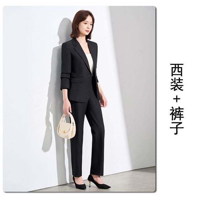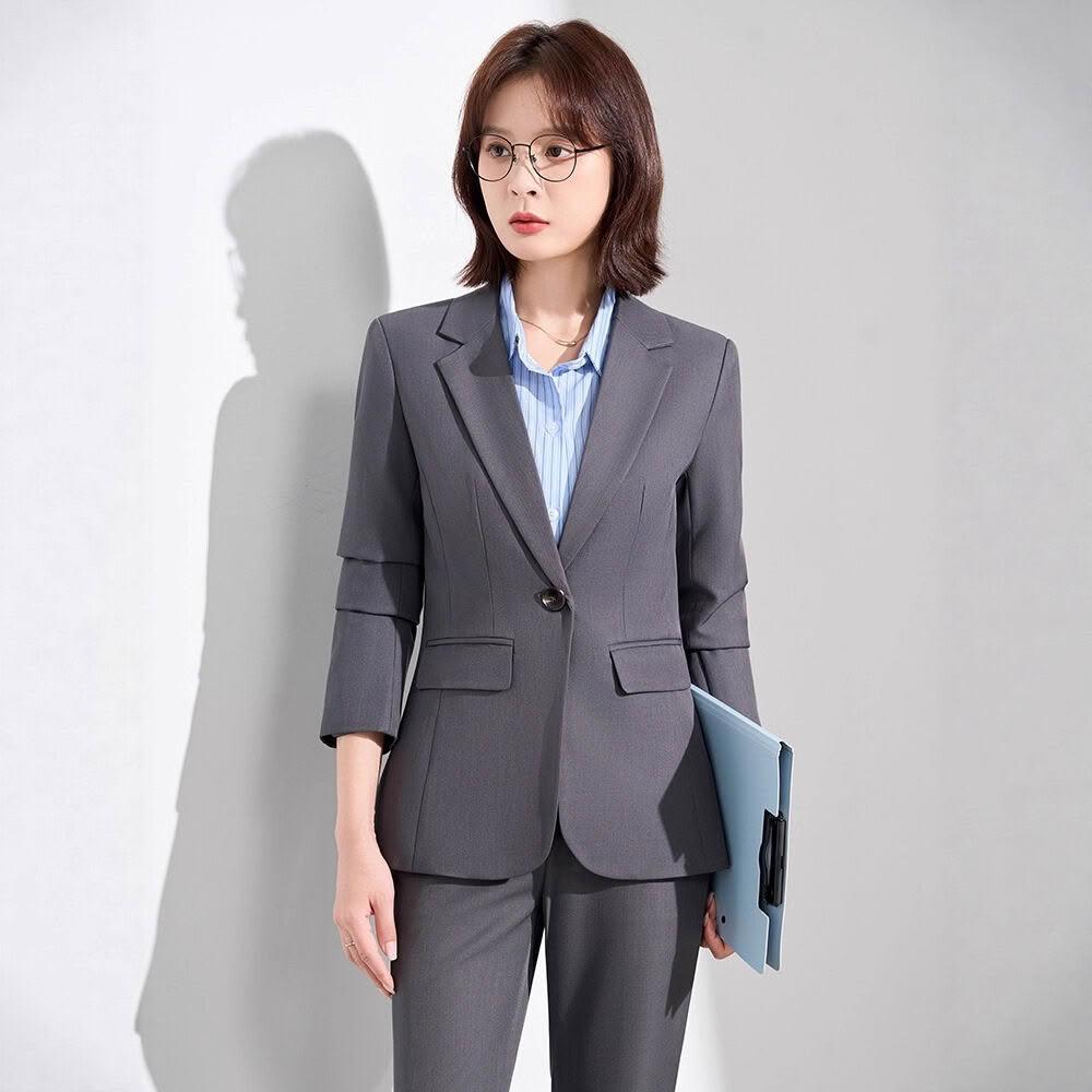 職業西裝套裝女秋冬新款大學生教資面試正裝修身商務職業西服正裝 23f