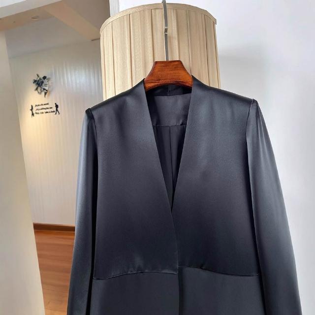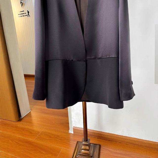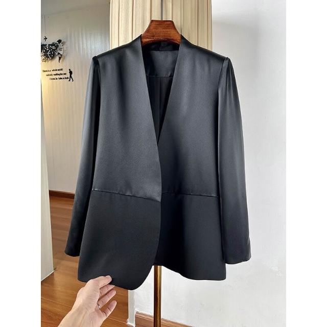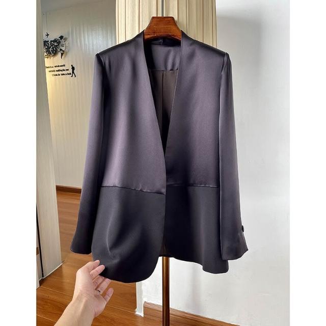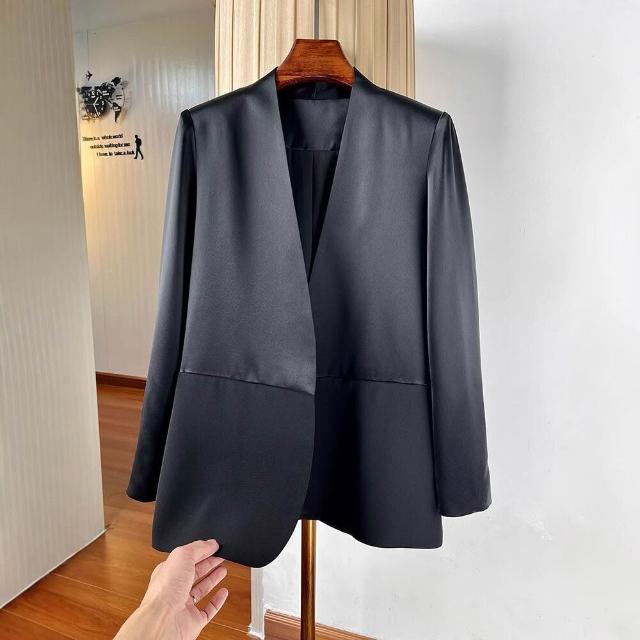 輕奢大氣醋酸緞面拼接西裝外套女春夏氣質V領寬松顯瘦單西上衣薄 65c