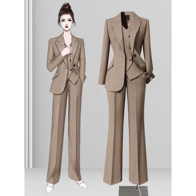 商務正裝女套裝高級感又a又飒西服外套正式場合西裝馬甲三件套秋 085