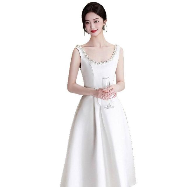 法式訂婚輕紗白色簡約宴會小禮服領證登記日常連衣裙復古晚禮服女 da6