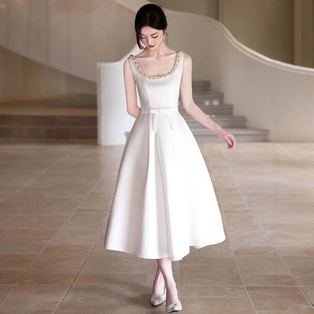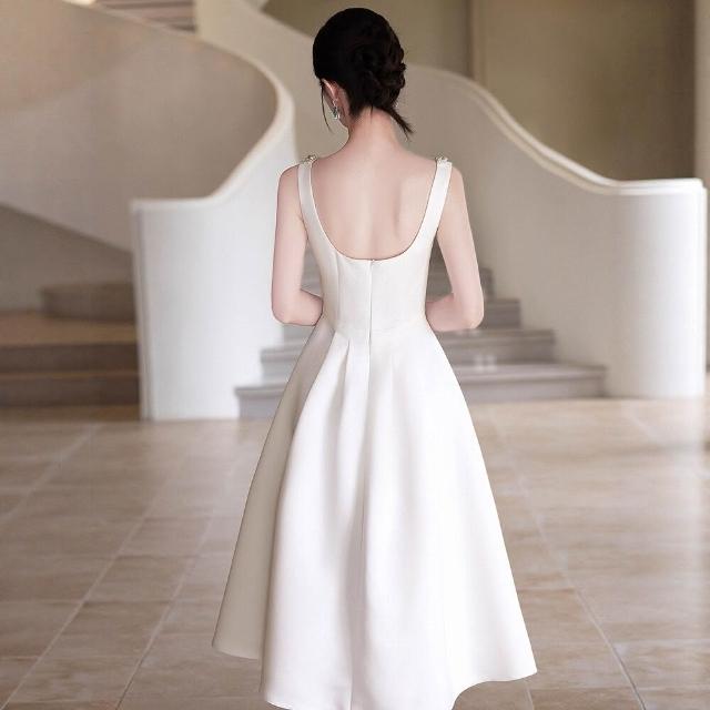 法式訂婚輕紗白色簡約宴會小禮服領證登記日常連衣裙復古晚禮服女 da6