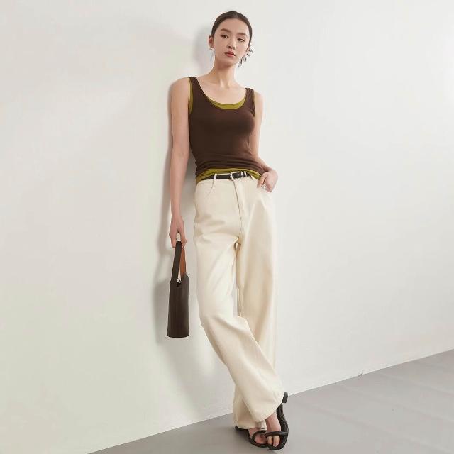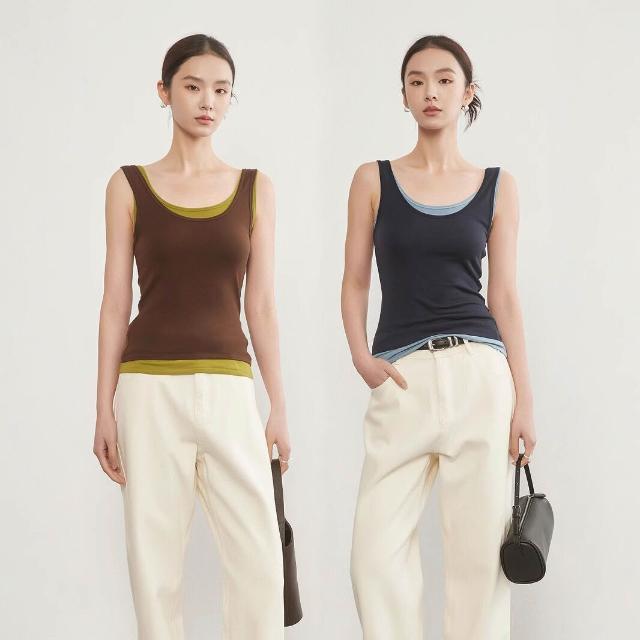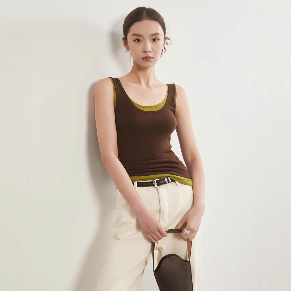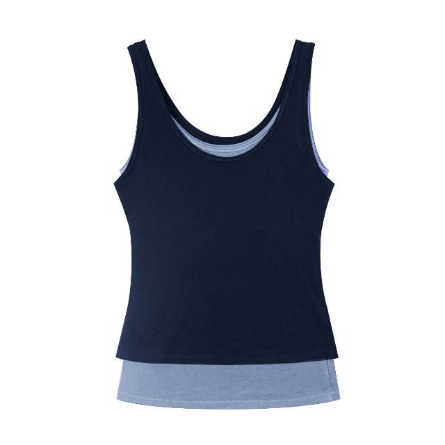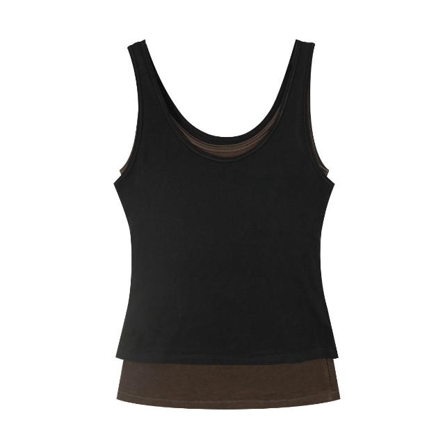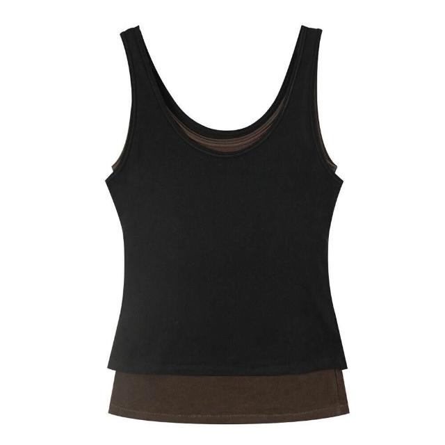 女士背心春夏真兩件修身上衣百搭針織內搭打底純色舒適U領吊帶女 4c9
