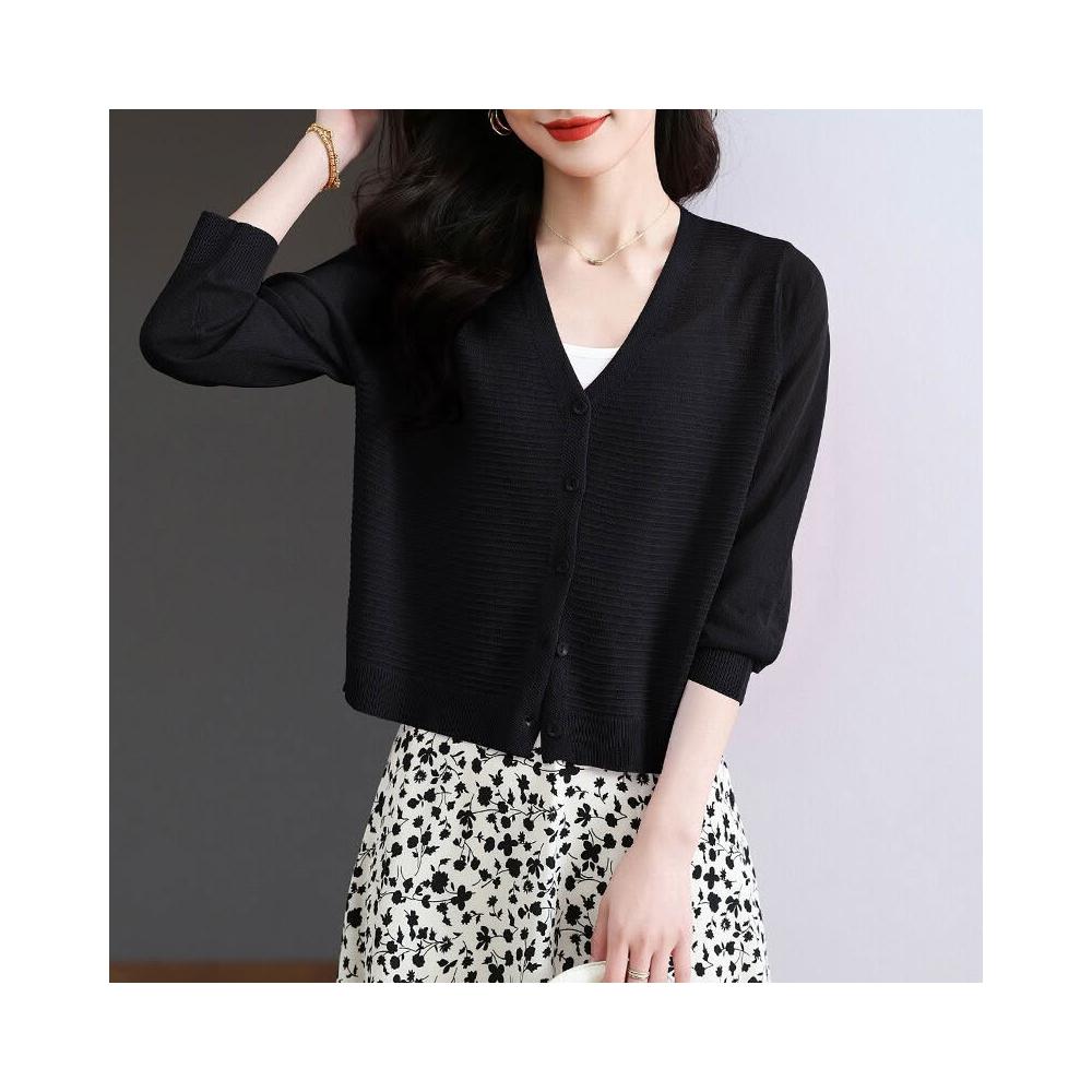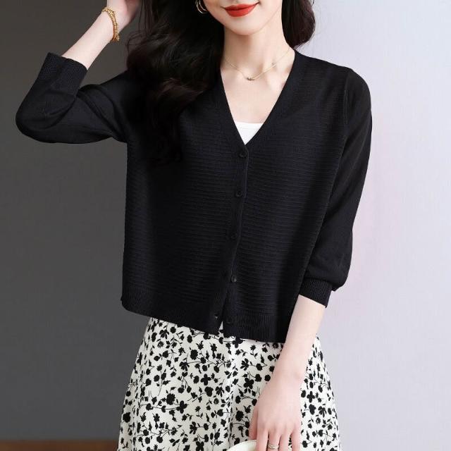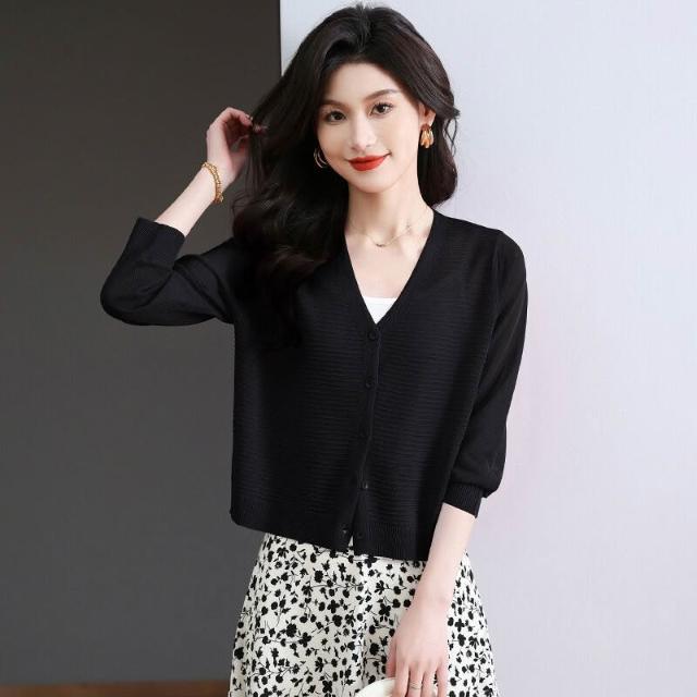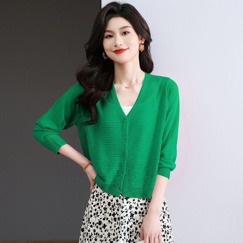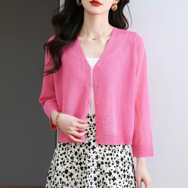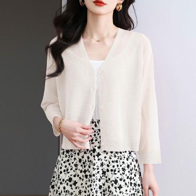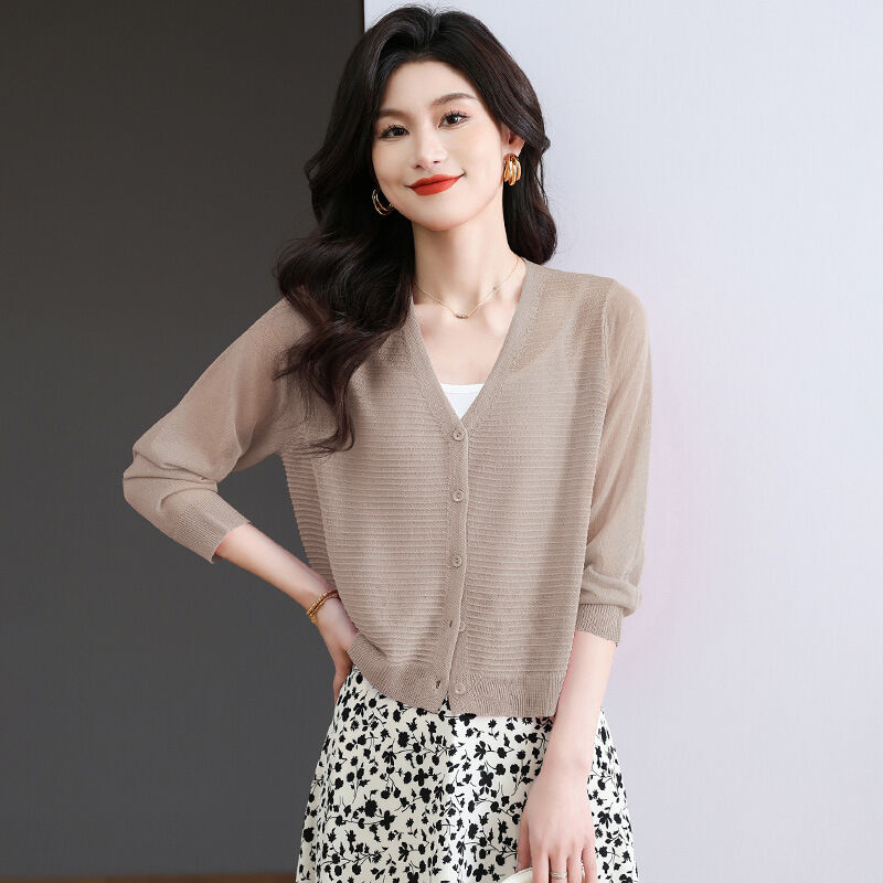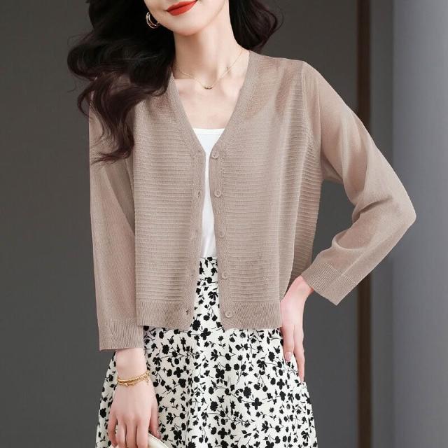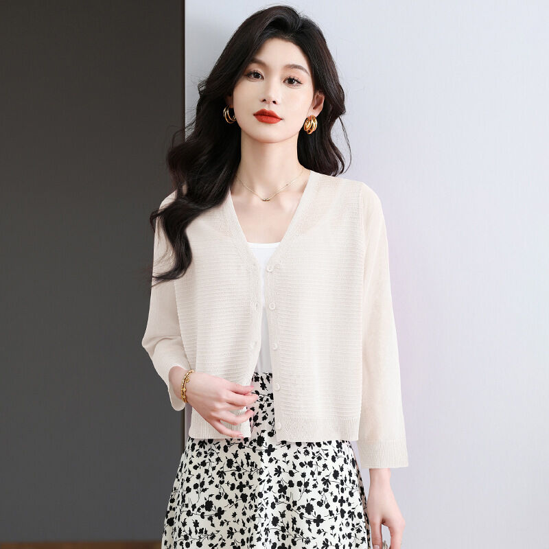 夏季冰絲針織開衫外搭防曬短款上衣女2025年新款時尚洋氣薄款外套 4d7