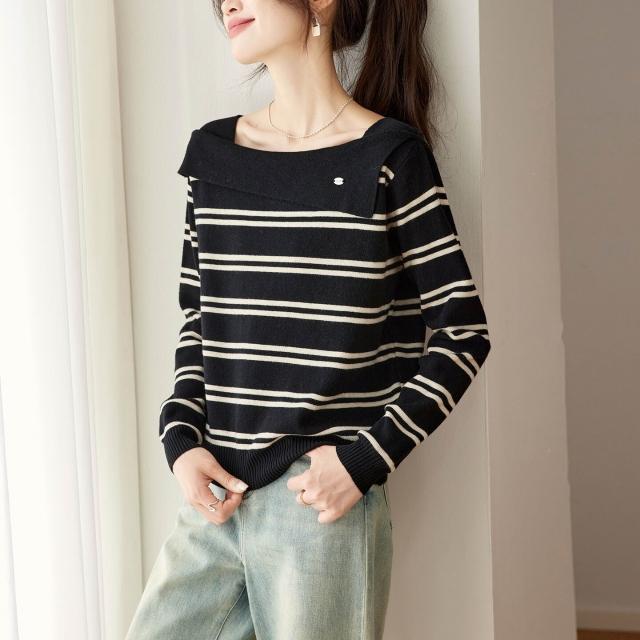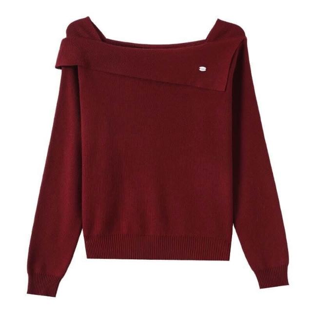 復古酒紅一字領針織衫女2025秋季新款氣質顯瘦套頭毛衣打底衫上衣 4b4