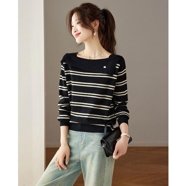 復古酒紅一字領針織衫女2025秋季新款氣質顯瘦套頭毛衣打底衫上衣 4b4