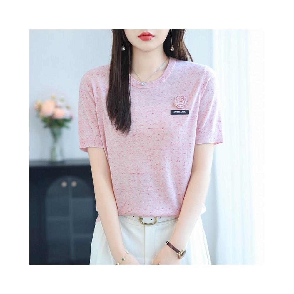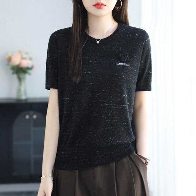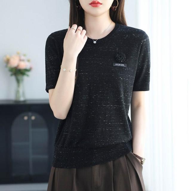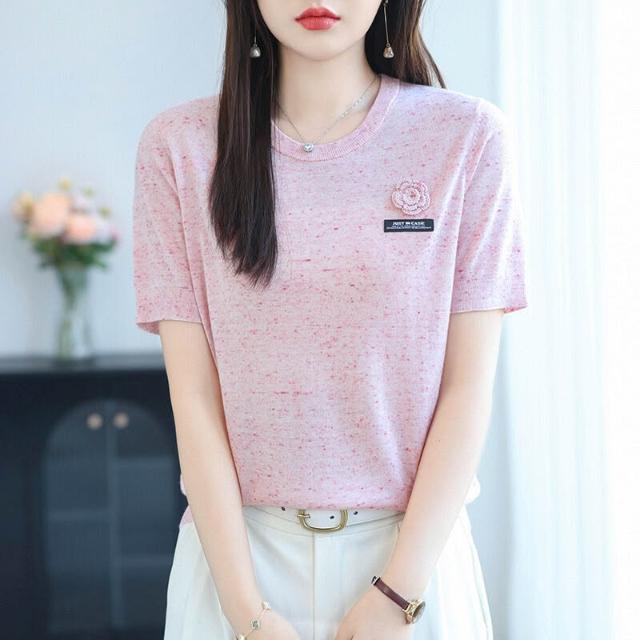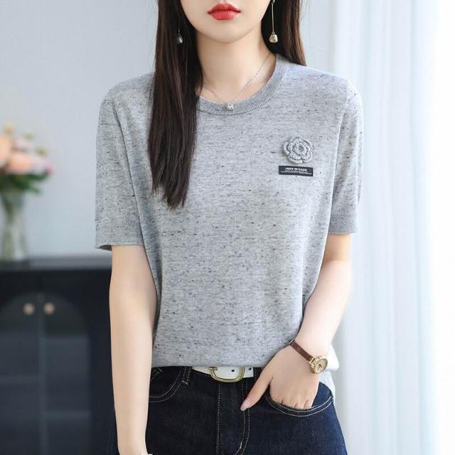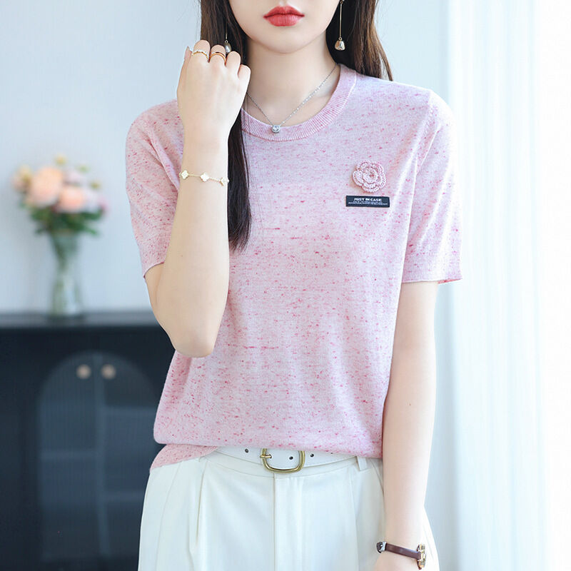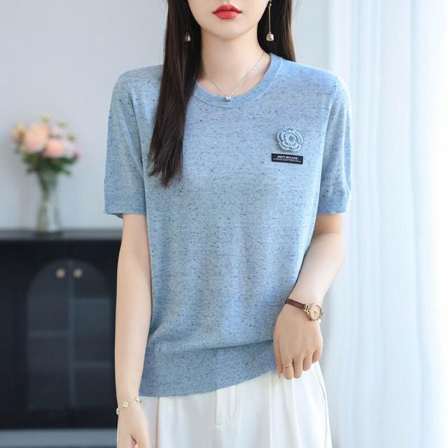 初秋女裝綿羊毛短袖t恤針織衫女2025年新款時尚薄款毛衣女打底衫 478