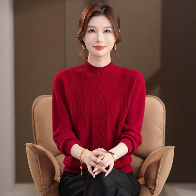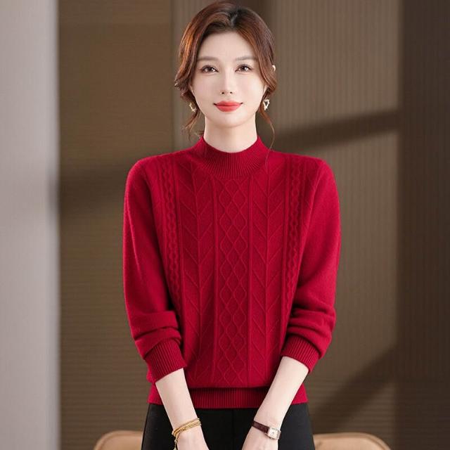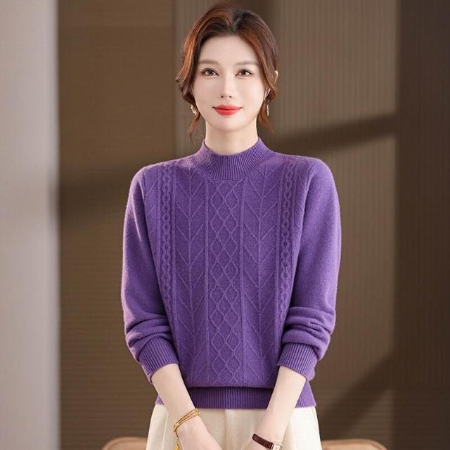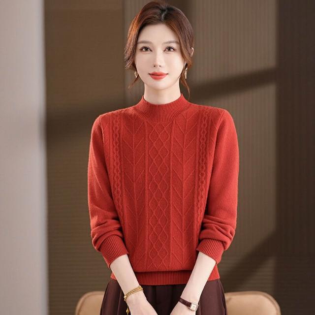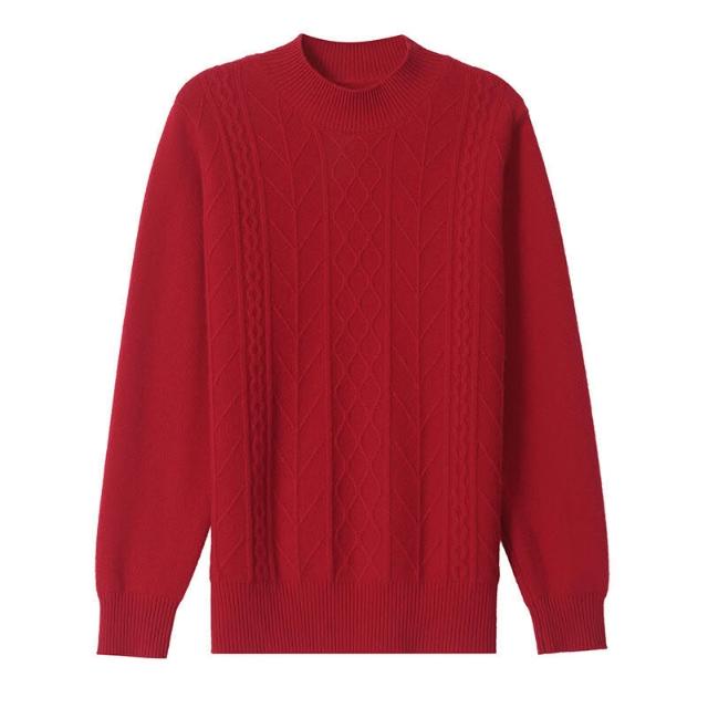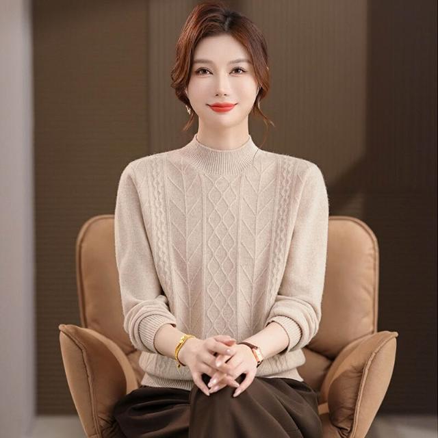 半高領羊毛衫女100純羊毛寬松大碼毛衣女秋冬厚款絞花針織打底衫 7a8