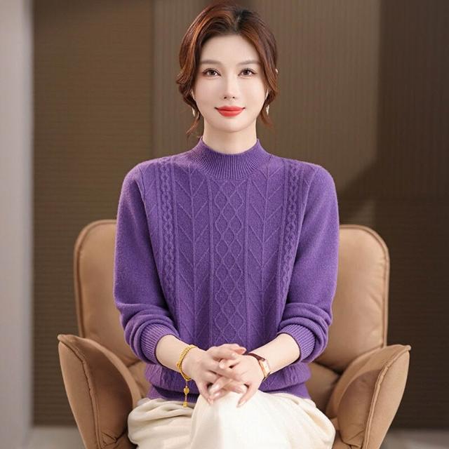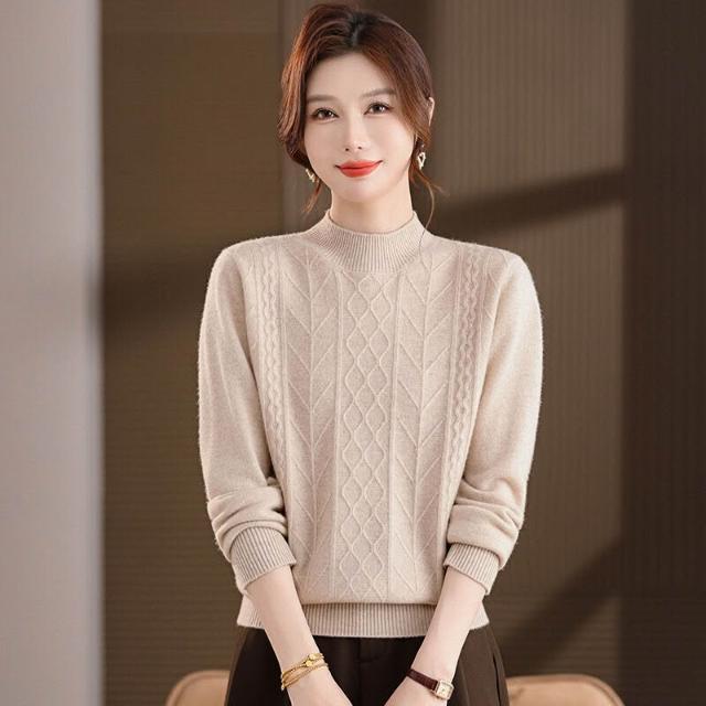 半高領羊毛衫女100純羊毛寬松大碼毛衣女秋冬厚款絞花針織打底衫 7a8