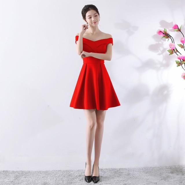 1329#敬酒服新娘春季結婚新款夏季紅色短款一字肩婚禮回門小禮服 87f