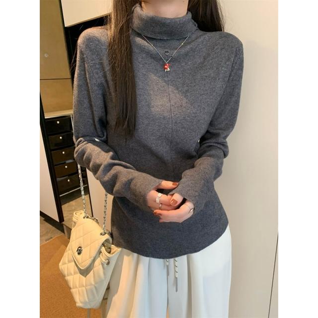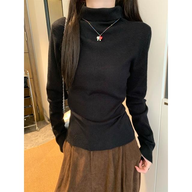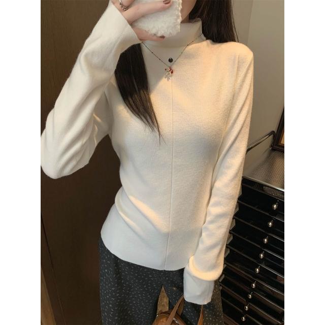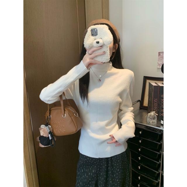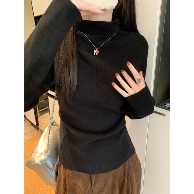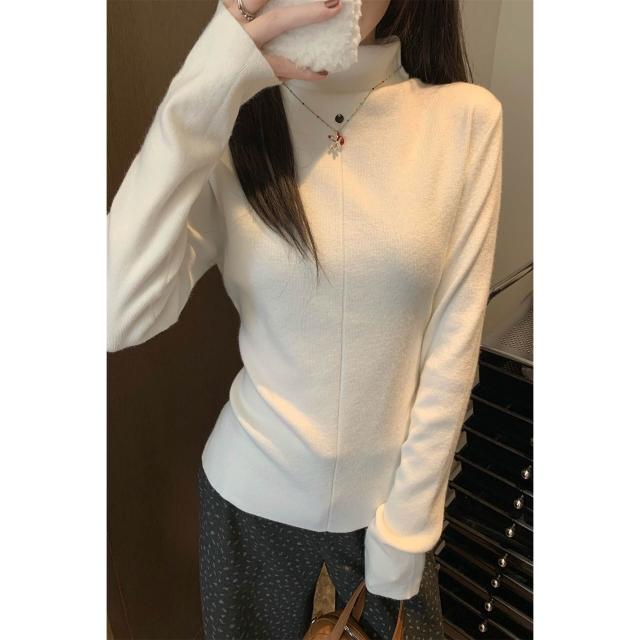 實拍實價韓系高領內搭打底衫女冬堆堆領針織衫修身顯瘦上衣