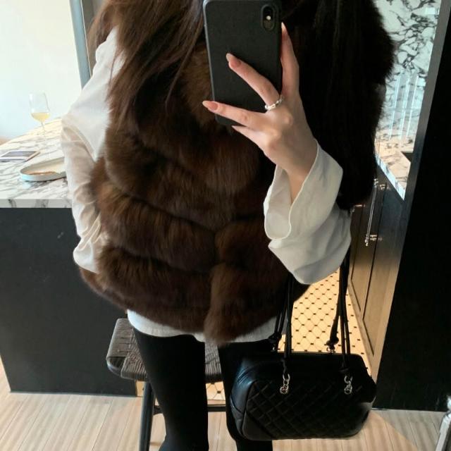 秋冬新款毛茸茸仿皮草時尚洋氣復古仿貂毛百搭氣質女馬甲背心外套