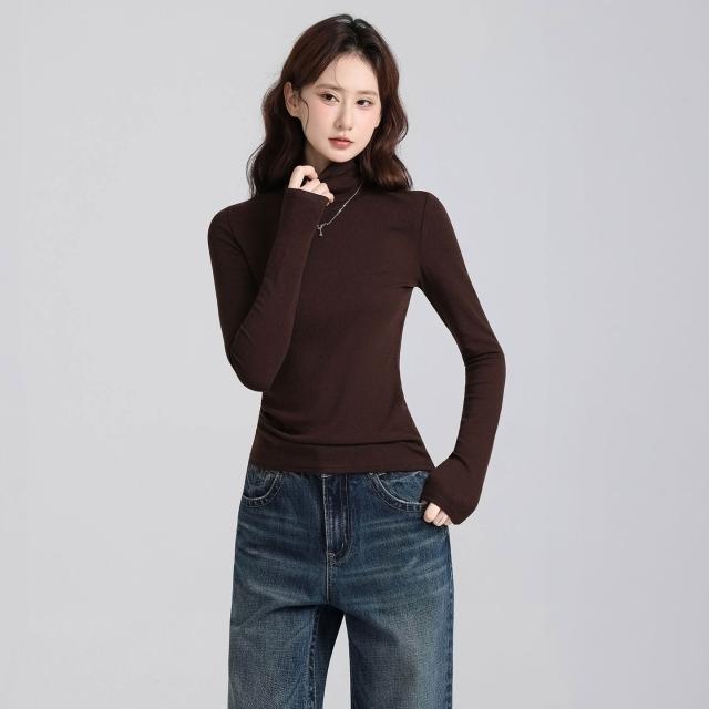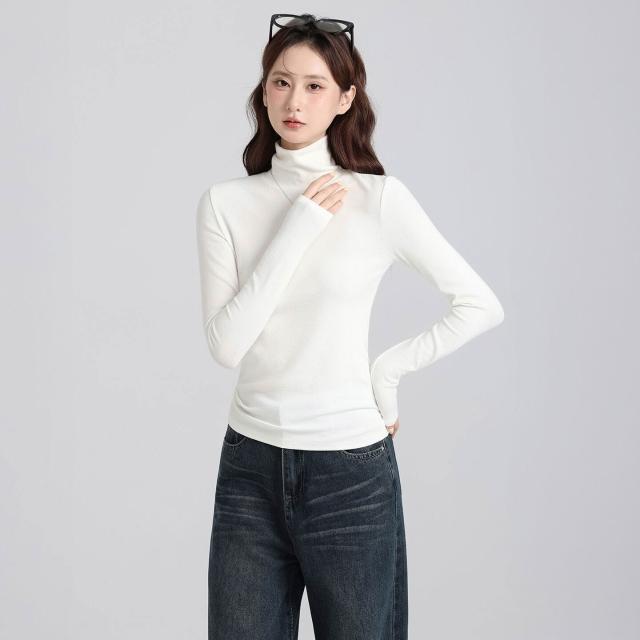 實拍實價白色高領天絲打底衫女秋冬內搭針織t恤百搭修身長袖上衣