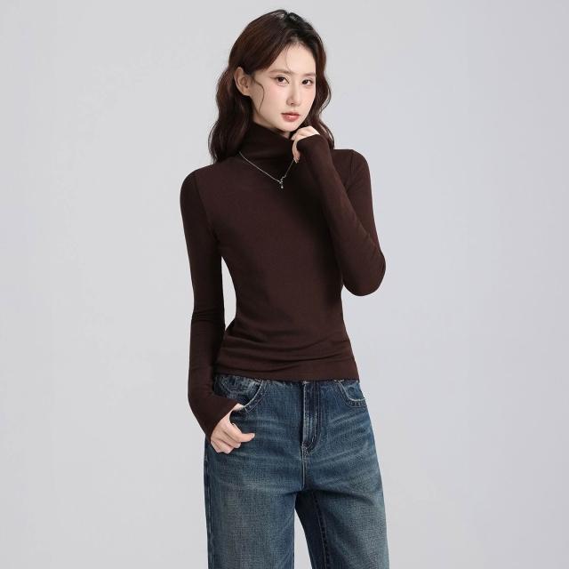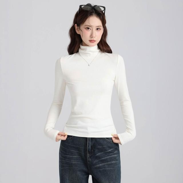 實拍實價白色高領天絲打底衫女秋冬內搭針織t恤百搭修身長袖上衣